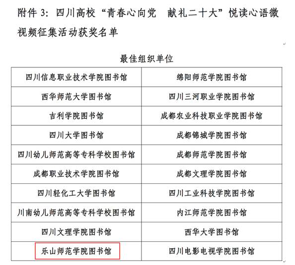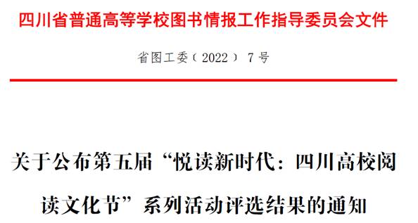 本网迅(文、图/郑爱菊)为深入推进全民阅读,推动书香社会建设,营造良好文化氛围,凝聚四川高校师生奋进新征程的强大精神力量,迎接党的二十大胜利召开。四川省教育厅普通高等学校图书情报工作指导委员会、四川省图书馆学会高校系统委员会以“悦读新时代”为主题,组织开展了第五届四川高校阅读文化节系列活动。