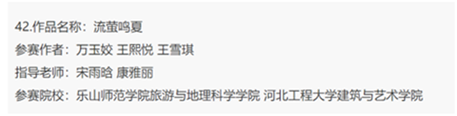 本网讯(文、图/宋雨晗)近日,旅游与地理科学学院学子万玉姣等3人创作的《流萤鸣夏》小游园设计作品在第十三届园冶杯大学生国际竞赛课程设计中获得荣誉奖,指导教师为宋雨晗、康雅丽。
