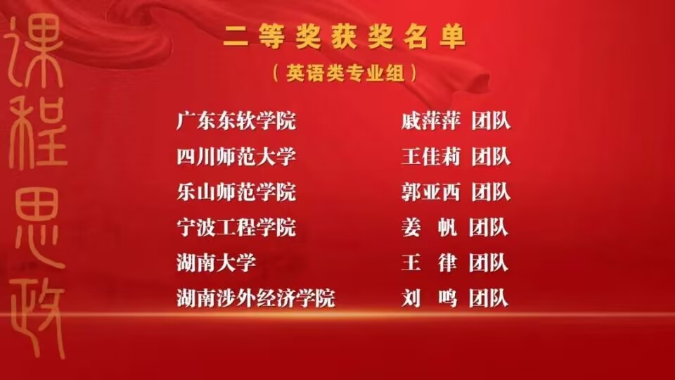 近年来,外国语学院高度重视课程思政工作,老师们在外语思政课程建设方面表现突出,在各级各类赛事中获得优异成绩。下一步,学院将持续贯彻《高等学校课程思政建设指导纲要》精神,进一步深耕课程思政教学改革,加强外语课程思政教学团队建设,积极备赛外语思政比赛,推进在线课程资源整合与建设,学习和创新外语课程思政教学新模式,上好外语课,讲好中国故事。(审核:徐波)