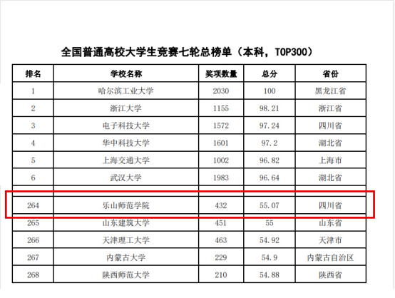 本网讯(文/刘怡君、代丽 图/刘怡君)3月22日,中国高等教育学会高校竞赛评估与管理体系研究专家工作组发布《2022全国普通高校大学生竞赛分析报告》。我校在全国普通高校大学生竞赛七轮总排行榜(本科)Top300榜单中位列264位,较去年上升3位,四川省共15所高校进入此榜单。在2018—2022年全国新建本科院校大学生竞赛Top100榜单上我校位列第33位,较去年上升4位,四川省仅有5所新建本科院校进入此榜单。