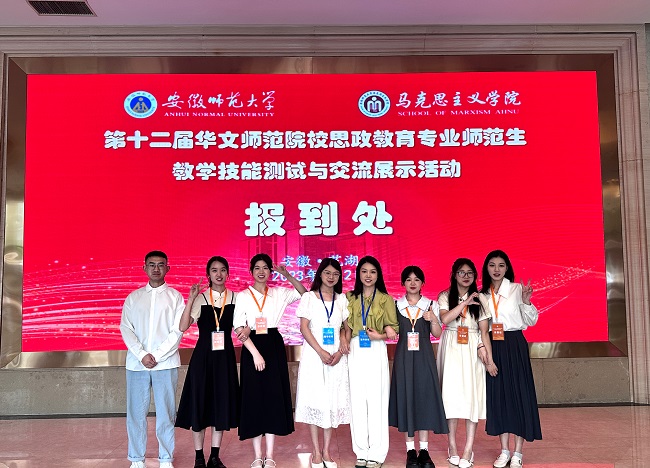 本网讯(文、图/何源)由中国教育技术协会微格教学专业委员会主办、安徽师范大学承办的第十二届“华文”师范院校思想政治教育专业师范生教学技能测试与交流展示活动于6月2日-5日在安徽师范大学举行。此次比赛有来自全国83所师范院校650名选手同台竞技,此次比赛由专任教师吴雨、何源两位老师带队。经过激烈角逐,马院学子最终斩获一等奖4项、二等奖5项、三等奖3项共12项的优异成绩。