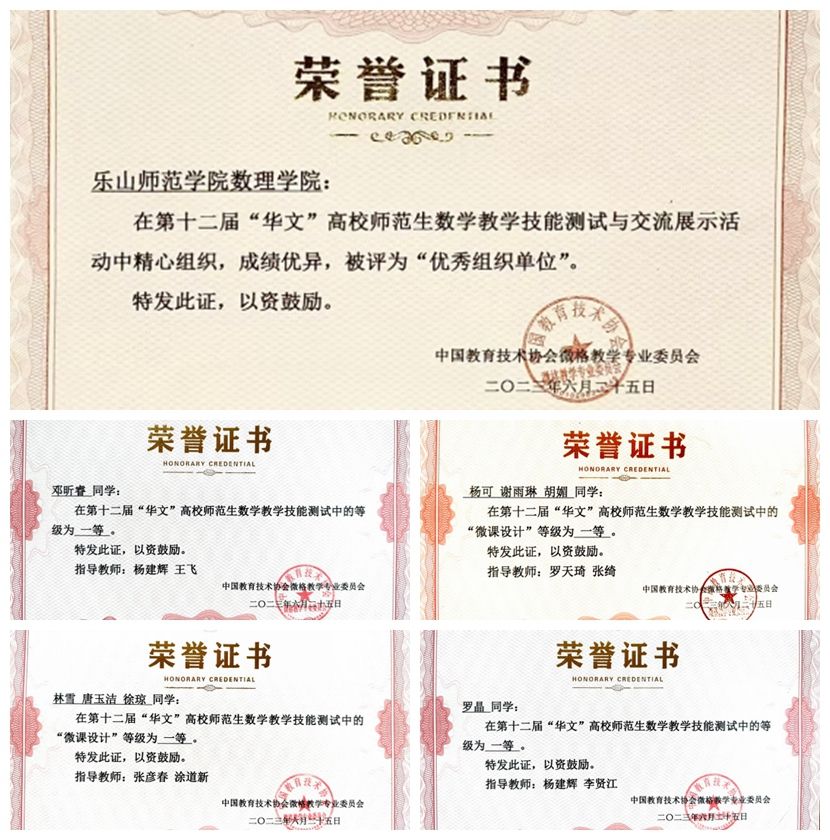 本网讯(文/罗天琦、图/杨建辉)6月23日-26日,由中国教育技术协会微格教学专业委员会主办、广西师范大学承办的第十二届“华文”全国师范院校数学教育专业师范生教学技能测试在广西桂林举行。本次大赛共有来自华中师范大学、南京师范大学、湖南师范大学等全国96个院系单位2286名师生线上线下参与,其中参与线上微课测试活动的师生1830人,参与线下教学技能测试活动的师生456人。我院邓欣睿等同学在数学微课设计能力和数学微格教学技能两项测试中均取得优异成绩,全部获奖。本次比赛成绩在参赛院校中名列前茅,共计一等4项,二等4项,三等2项。其中微课设计一等2项、二等2项,微格教学一等2项,二等2项,三等2项。数理学院再次荣获“优秀组织单位”称号。