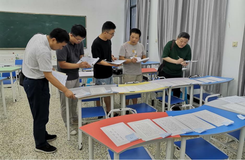 比赛过后,美术与设计学院书法学杨德明、周文斌、刘善军、辛纪者、武涛五位专业老师现场打分,共选出一等奖14项、二等奖31项、三等奖45项、优秀奖57项,并推选出20位专业组同学、40位非专业组同学参加省赛。