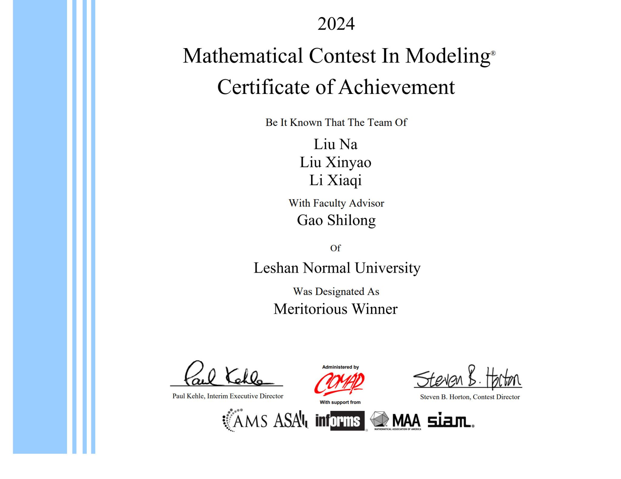 本网讯(文、图/刘高峰)近日,由美国数学及其应用联合会(COMAP)主办的美国大学生数学建模竞赛(MCM/ICM)(简称“美赛”)发布获奖名单,乐山师范学院数理学院共有9支队伍参赛,经过3天的奋战全部队伍都成功提交了论文完成参赛,共获得2项M奖、1项H奖和6项S奖的优异成绩,在获奖数量上创近几年新高。