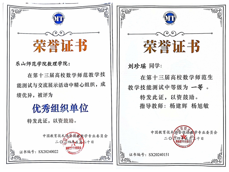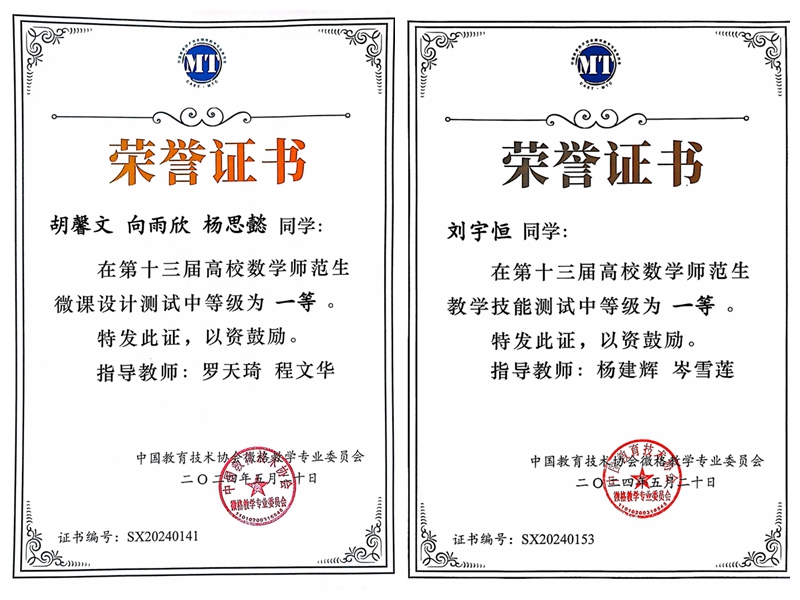 本网讯(文、图/杨建辉)近日,数理学院刘珍瑶等18名同学分别以组队赛、个人赛方式参加了第十三届高校数学师范生微课设计与微格教学技能测试与交流展示两项比赛,并喜获佳绩。