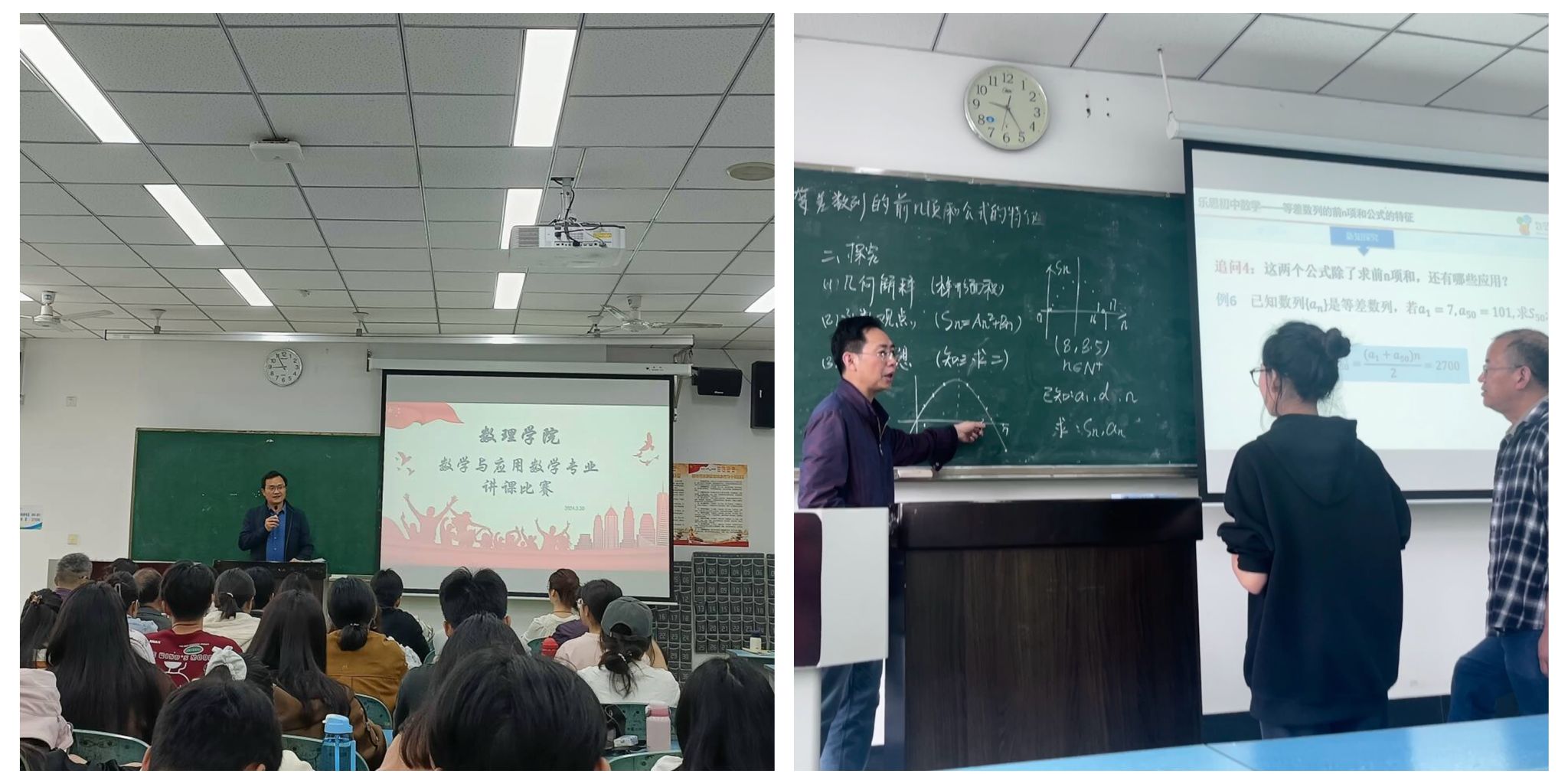 数理学院一贯重视师范生教学技能的培养,学院举办了初赛和终赛两轮选拔,屈小兵院长亲自到场为选手加油鼓劲。学科教学法团队杨建辉、张彦春、罗天琦老师与成都石室天府中学唐宇、成都郫都区第四中学涂道新、乐山一中岑雪莲、沐川利店中学毛叶等一线教师紧密合作,从选题、教学设计、课件制作、微课录制,到现场教学、答辩,进行了为期两个月的赛前训练。