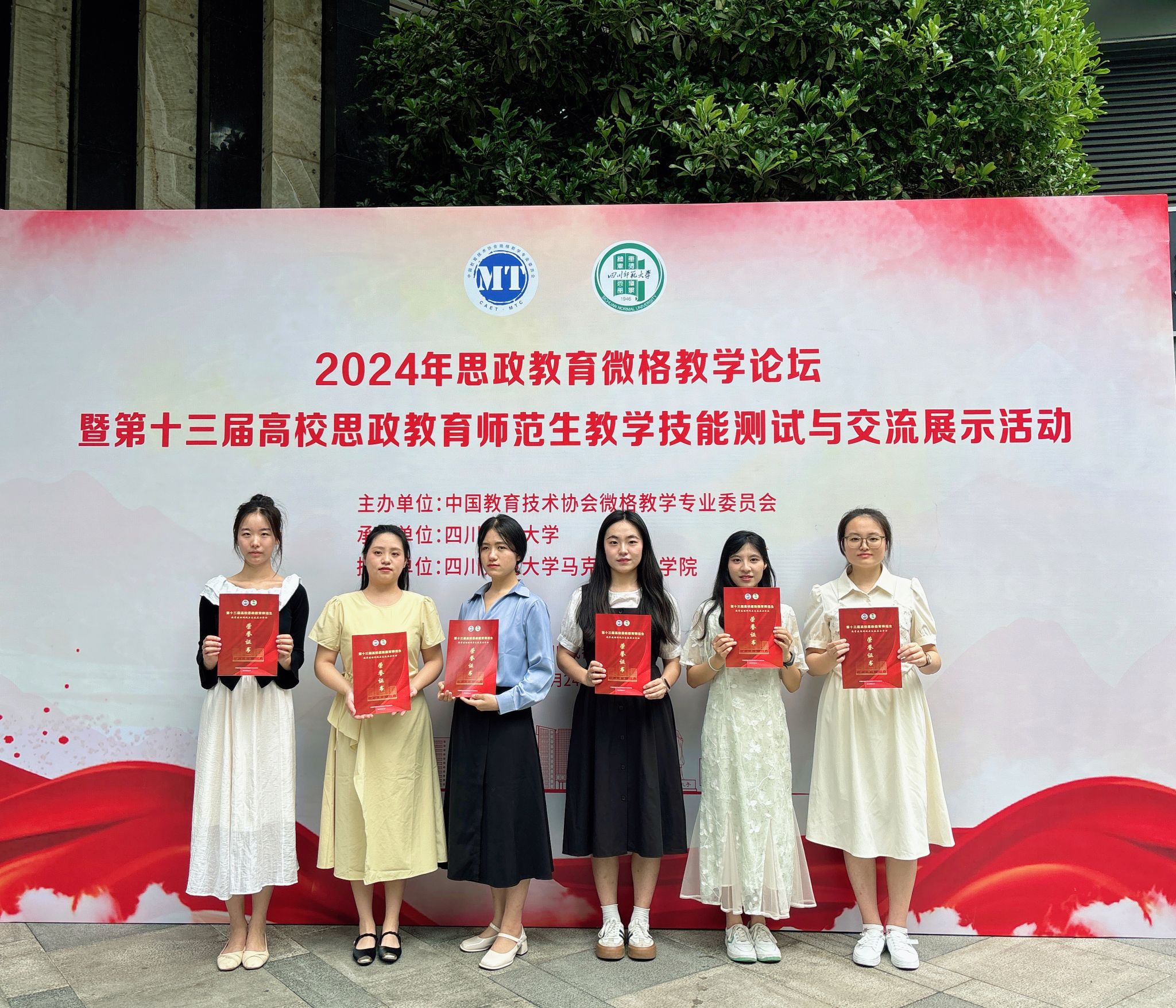 本网讯(文/尹桐 图/吴雨)为展示马院学子的风采,激励更多同学提升自己的师范生技能。5月25至27日,乐山师范学院马克思主义学院六名同学,前往四川师范大学参加华文杯教学技能大赛并脱颖而出,取得佳绩。本次比赛由马克思主义学院院长郑文杰、专任教师徐碧英、吴雨带队前往。