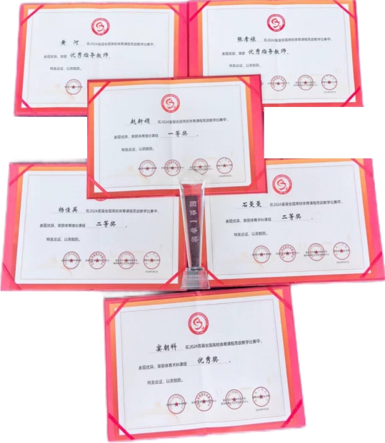 四位参赛教师凭借扎实的专业素养和出色的教学能力在此次比赛中表现突出,为学校夺得了团体一等奖,其中,赵新娟荣获理论组一等奖,石曼曼荣获术科组二等奖,杨佳英荣获理论组二等奖,晏朝科荣获术科组优秀奖,黄河和张孝禄被评为优秀指导教师,为学校赢得了荣誉。这些成绩的取得是乐山师范学院教师团队努力和专业精神的体现,也是学校在体育课程思政教学方面不断探索和实践的结果。