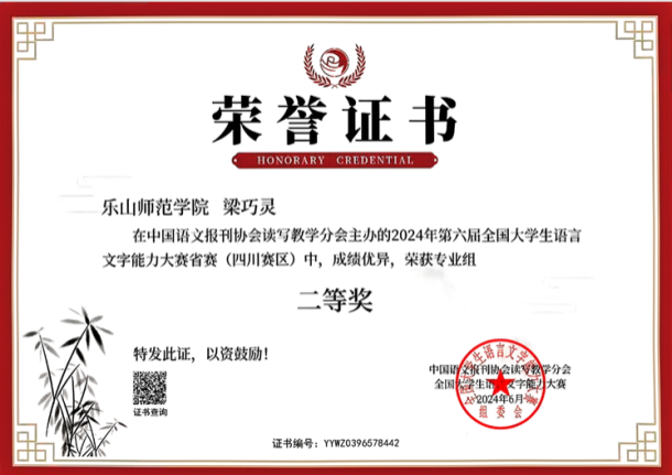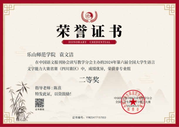 本网讯(文图/陈熹)近日,文新学院在2024年第六届全国大学生语言文字能力大赛中捷报频传,学子们以卓越的语言文字能力摘得多项荣誉。此次大赛由国家语委指导,中国语文报刊协会读写教学分会主办,旨在增强大学生规范使用国家通用语言文字的意识,提升大学生语言文字素养,弘扬中华文化。