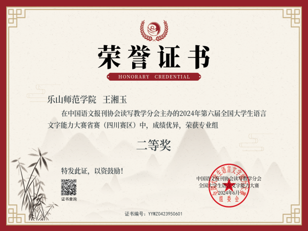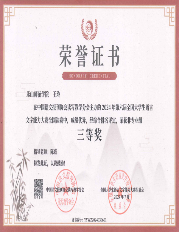 在激烈的竞争中,文新学院选派的王玲、王湘玉等8位同学组成的代表队表现出色。王玲同学凭借深厚的语言功底和出色的表达能力,荣获四川省赛区一等奖及全国三等奖。梁巧灵、黄婧欣、袁文洁、王湘玉四位同学也荣获省二等奖,韩硕、胡桂竹、沈晓雪则赢得省三等奖,展现了学院在语言文字教育方面的卓越成果。