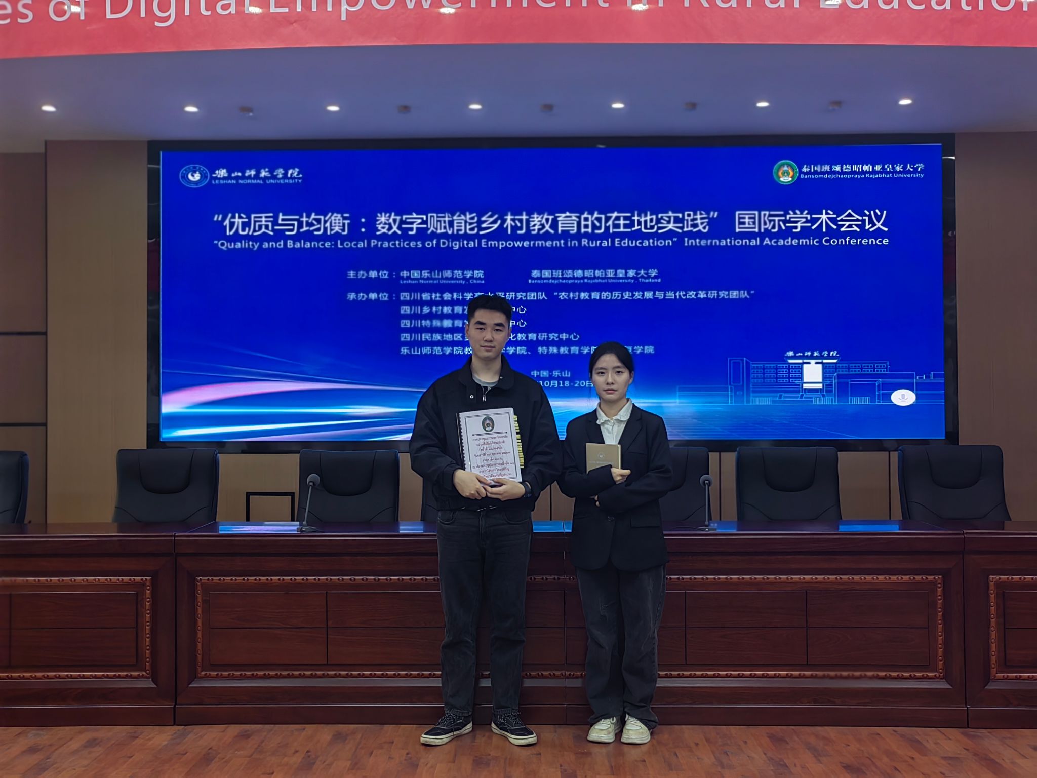 10月18日,蒋俊凯和陈星竹凭借优秀的双语能力和跨文化交际能力,为与会嘉宾介绍乐山市情与我校校情,积极传播地方优秀文化,为我校的国际交流与合作搭建了文化的桥梁。