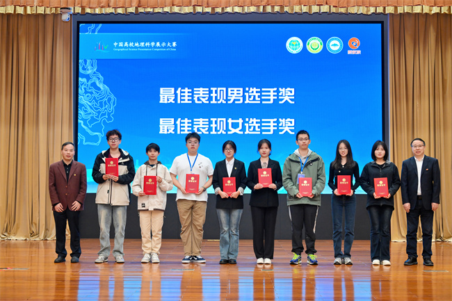 本网讯(文、图/戴琛城、孟凡帅、乔恒忠),10月25-27日,中国地理学会、中山大学地理科学与规划学院主办,湖南师范大学地理科学学院承办的 “新蚁族杯”第七届中国高校地理科学展示大赛全国总决赛在湖南省长沙市圆满落幕。我校旅游与地理科学学院地理科学、人文地理与城乡规划专业戴琛城、刘淼、邓佩佩、高珠梅、张耀元同学组建的“岷江解码队”(指导老师:乔恒忠、孟凡帅,领队:孙永兴),作为四川省唯一闯入全国总决赛的参赛队伍,荣获自然地理组(含综合地理方向)全国总决赛三等奖,戴琛城同学荣获“最佳表现男选手奖”。