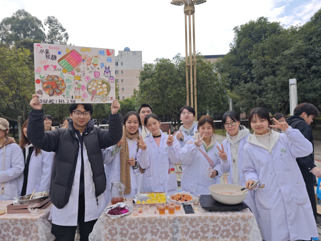 本网讯(图/海哈木呷西、朱欣仪 文/沈芝芳)为探索专创融合育人新路径,提升课程育人实效,激发学生创新意识,11月28日上午,生命科学学院于桂花广场成功举办了“美食创客集市”活动。活动以创客精神为引领,通过将食品加工技术实验课程实践操作转化为创业实践,充分融合专业知识与创新知识、课程考核与创新创业成果。
