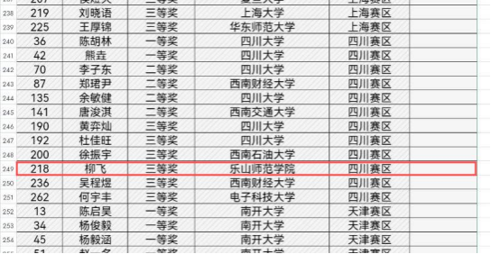 经过激烈角逐,本届决赛共评选出一等奖250项、二等奖375项、三等奖625项,及“高校优秀组织奖”等奖项。中国数学会理事长席南华院士、浙江省数学会理事长包刚院士、中国数学会青年工作与大学生数学竞赛委员会主任吴臻、浙江师范大学副校长李盛等出席颁奖典礼并致辞。我校数理学院数学与应用数学专业2023级学生柳飞代表乐山师范学院参加了本次决赛,并获得数学类低年级组三等奖。