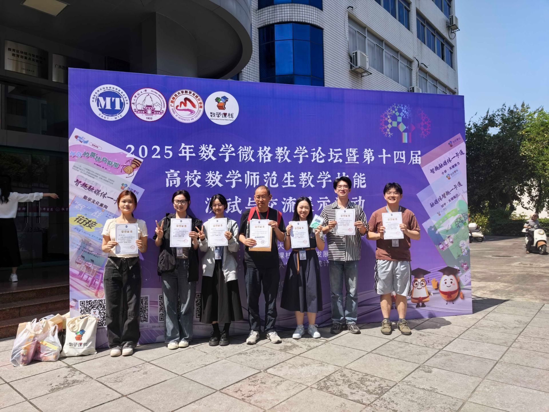 此次活动由中国教育技术协会微格教学专业委员会主办,广西师范大学承办,汇集了来自华中师范大学、西南大学、云南师范大学、重庆师范大学、哈尔滨师范大学等高校1738名选手,其中微课设计能力测试参与院校88所,微课作品共445件,指导教师870人;现场教学技能测试参与院校96所,参加学生440人,指导教师870人。在学院支持和学院教学法团队教师、以及参赛选手的共同努力下,我院选手在数学微课设计和线下教学技能展示两项活动中均取得优异成绩,全部获奖,共计一等5项,二等3项,三等2项,成绩在参赛院校中名列前茅。数理学院再次荣获优秀组织单位称号。