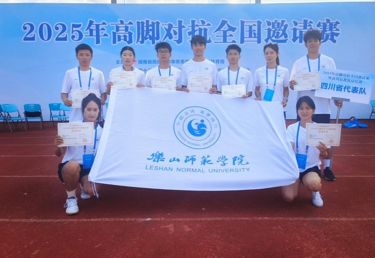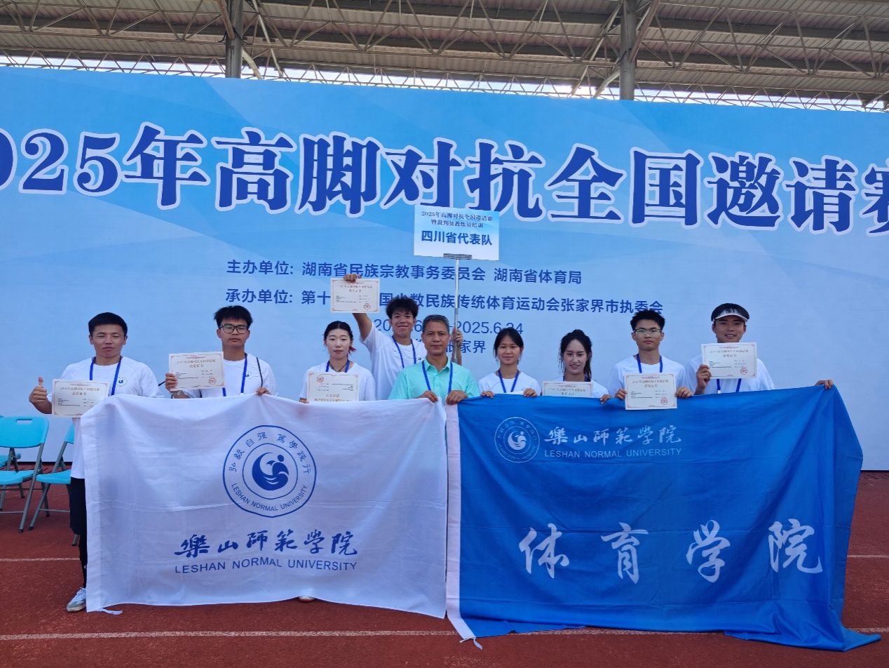 本网讯(文/孟亚兰 图/孟亚兰)2025年6月21日至25日,高脚对抗全国邀请赛暨裁判员教练员培训开班仪式在湖南省张家界市举行。本次赛事由湖南省民族宗教事务委员会与湖南省体育局联合主办,第十三届全国少数民族传统体育运动会张家界市执委会承办。经过激烈的竞赛过后,我校在10个项目中斩获1个一等奖、3个二等奖和4个三等奖,所有参赛选手全部获奖。
