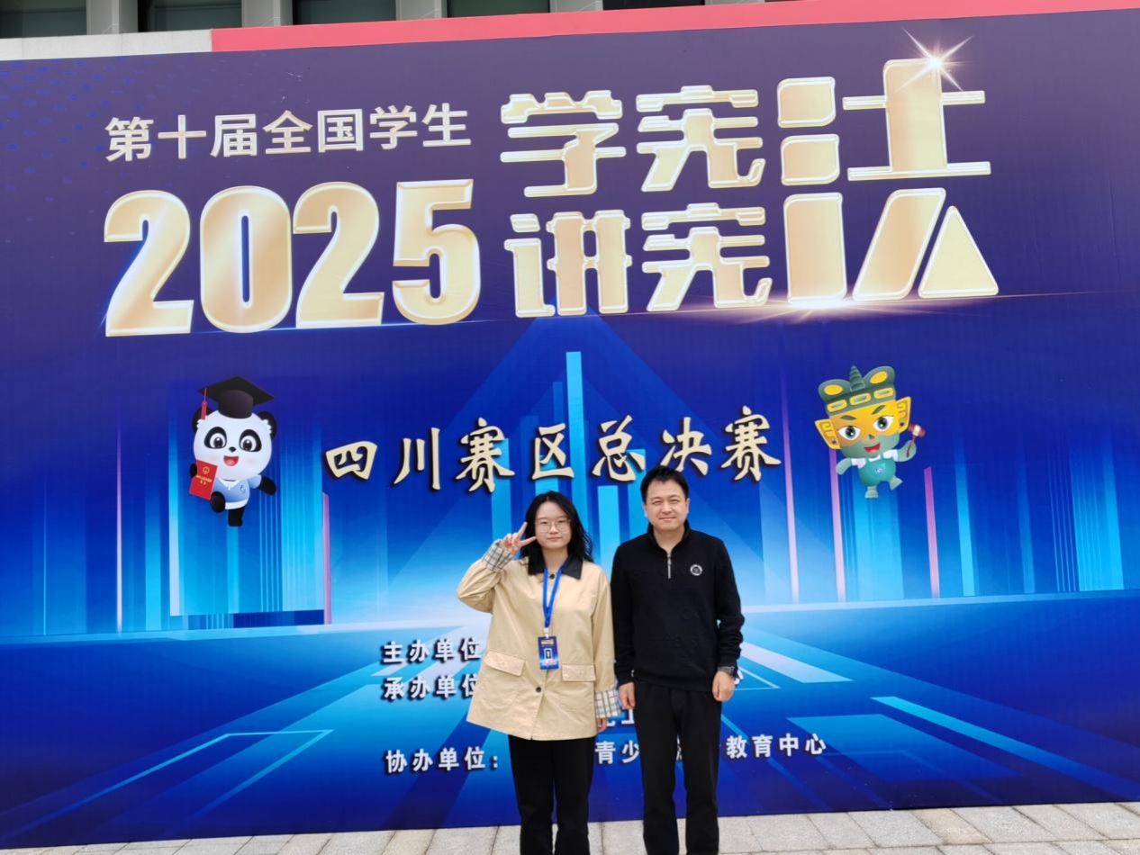 本网讯(文/江琳图/阮小莲)为深入学习、扎实落实习近平法治思想,强化青年宪法教育,厚植全社会法治信仰,10月27日至28日,由四川省教育厅主办,青少年法治教育中心、四川轻化工大学联合承办的第十届全国学生“学宪法讲宪法”比赛四川赛区总决赛在四川轻化工大学成功举办。法学与公共管理学院副院长赵勇带队出征,23级法学专业学生阮小莲凭借片区赛第一名的优异战绩,作为第六片区代表跻身素养竞赛决赛,最终力克群雄斩获一等奖,实现了法管学院在该赛事中的历史性突破。