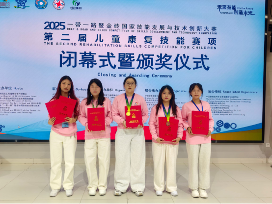 2025“一带一路”暨金砖国家技能发展与技术创新大赛儿童康复技能赛项由金砖国家工商理事会中方理事会、一带一路暨金砖国家技能发展国际联盟、“一带一路”暨金砖国家技能发展与技术创新培训中心、中国发明协会、教育部中外人文交流中心联合主办。大赛聚焦特殊儿童康复核心需求,设言语康复、孤独症康复、感觉统合训练等四大赛道,以“理论考核+实操演示+案例答辩”模式检验参赛选手的康复实操能力和创新思维,对促进“一带一路”沿线国家特殊儿童康复经验交流、助力国家特教事业高质量发展意义重大。本次儿童康复技能赛项严格遵循国际标准与行业规范,分为初赛和决赛两个阶段。自赛事启动以来,我院高度重视,经院赛选拔后派出6名同学参加初赛选拔。经过初赛的严格评审,5名同学成功拿到了通往全国总决赛的“入场券”,与来自全国的160名选手同台竞技。