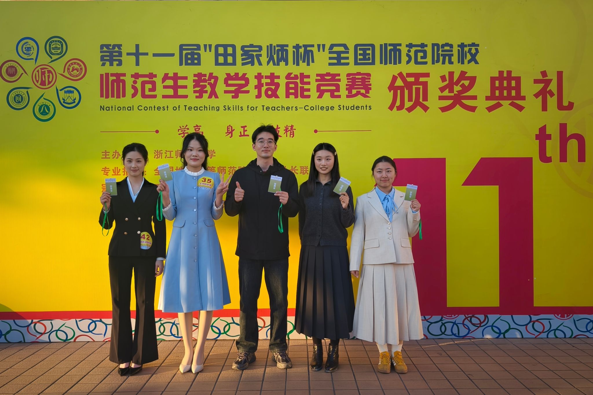 全国师范院校师范生教学技能竞赛是全国地方(重点)师范院校教务处长联席会议确定,由田家炳基金会冠名赞助,浙江师范大学主办,目前国内规模最大、学科最全、影响最广的师范生技能专业赛事。本次竞赛共吸引了来自全国289所院校的2345名选手参加,其中共有来自178所院校的564名入围现场决赛。决赛采取现场抽签、现场抽题、现场设计、现场展示的方式进行,选手抽取选题后,在无网络的机房120分钟内,独立完成一课时的教学设计与多媒体课件制作,并进行3分钟的即席讲演与10分钟的模拟上课。经过激励角逐,我校五位决赛选手夺得一等奖2项、二等奖3项。此外,汉语言文学专业峗克境、物理学专业刘宇函、化学专业熊莉萍、美术学专业刘宇畅、地理科学专业马丹妮5位选手获得三等奖。