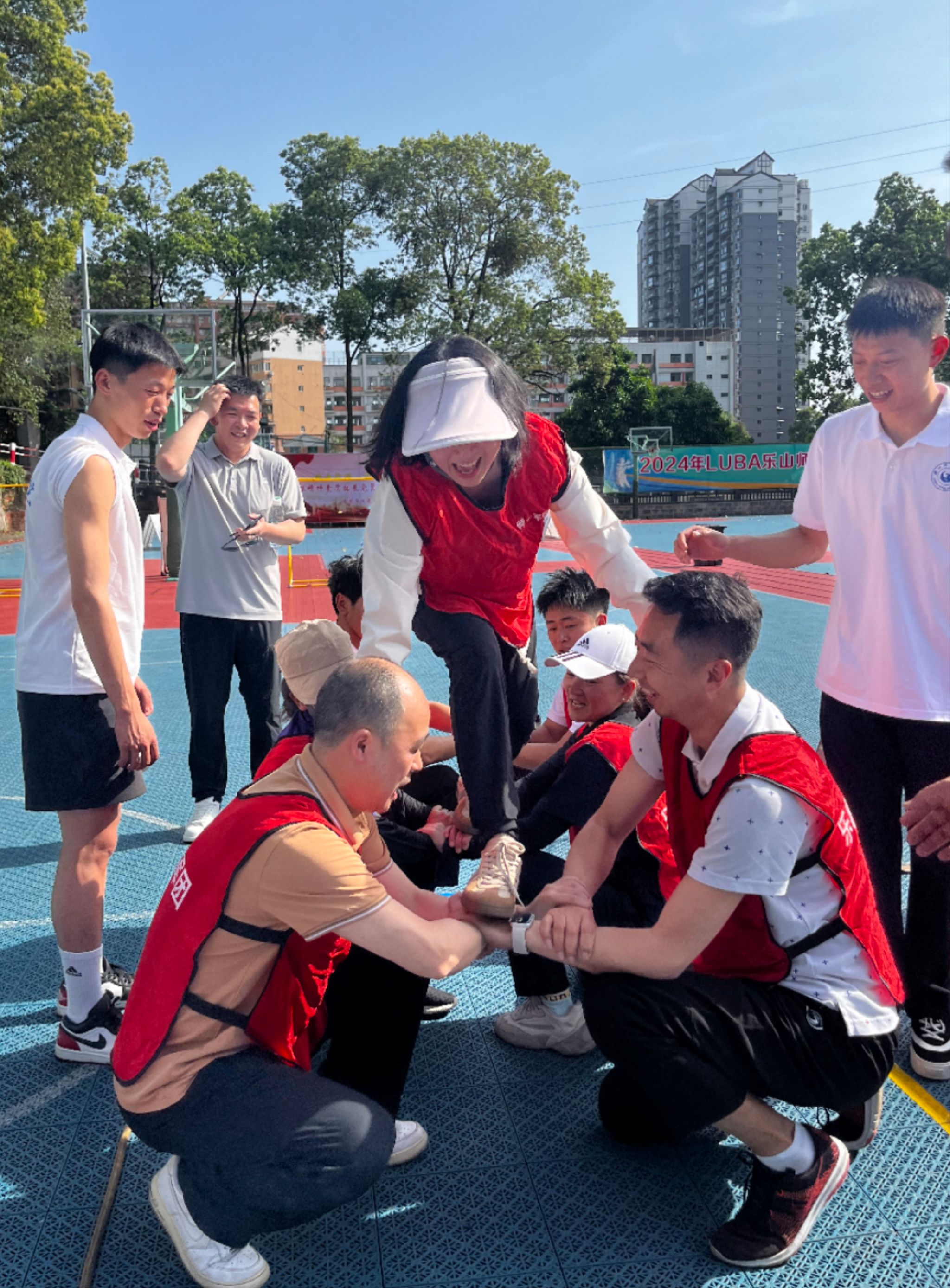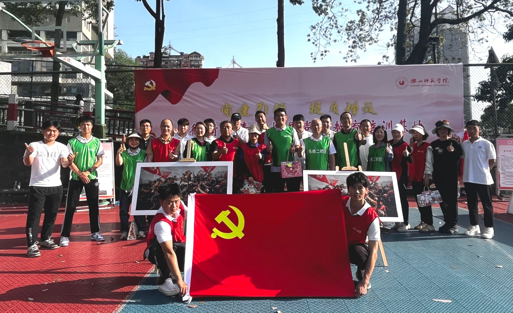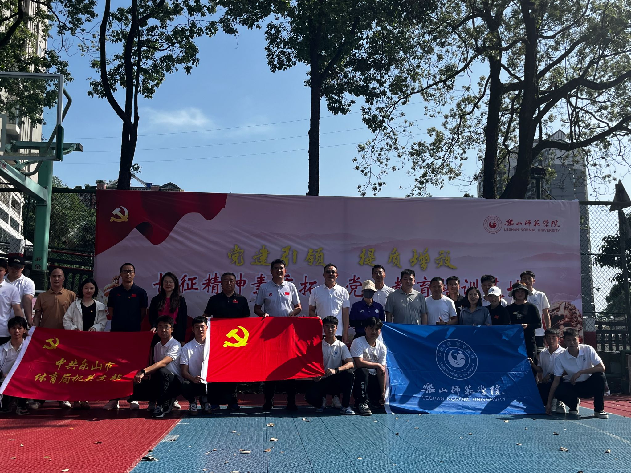 本网讯(文/张剑 图/胡娇娇)为了巩固拓展主题教育成果,丰富党纪学习教育形式,4月19日,体育学院党委与乐山市体育局机关党支部,在我校长征精神素质拓展党员教育培训基地联合开展党建共建活动,本次活动以“党建引领 提质增效”为主题,旨在促进高校与地方的党建工作的创新发展,实现双方的互利共赢,提升党员素质与能力,为地方经济社会发展贡献“体育力量”。乐山市体育局机关党委书记陈建军、副局长聂朝飞,体育学院党委书记钟大勇、院长张峰、副院长黄河、张爱平等30余名党员参加了共建活动。