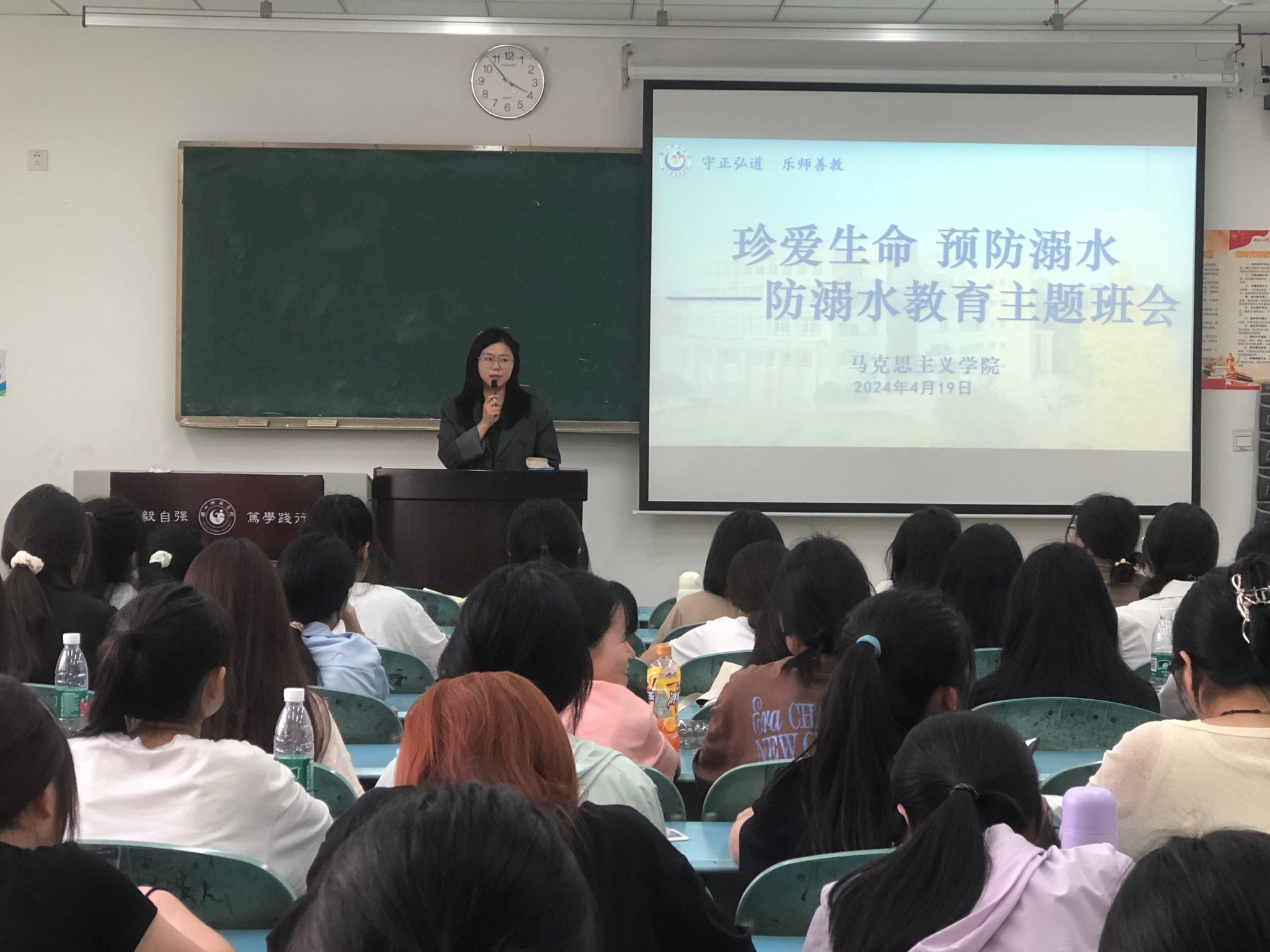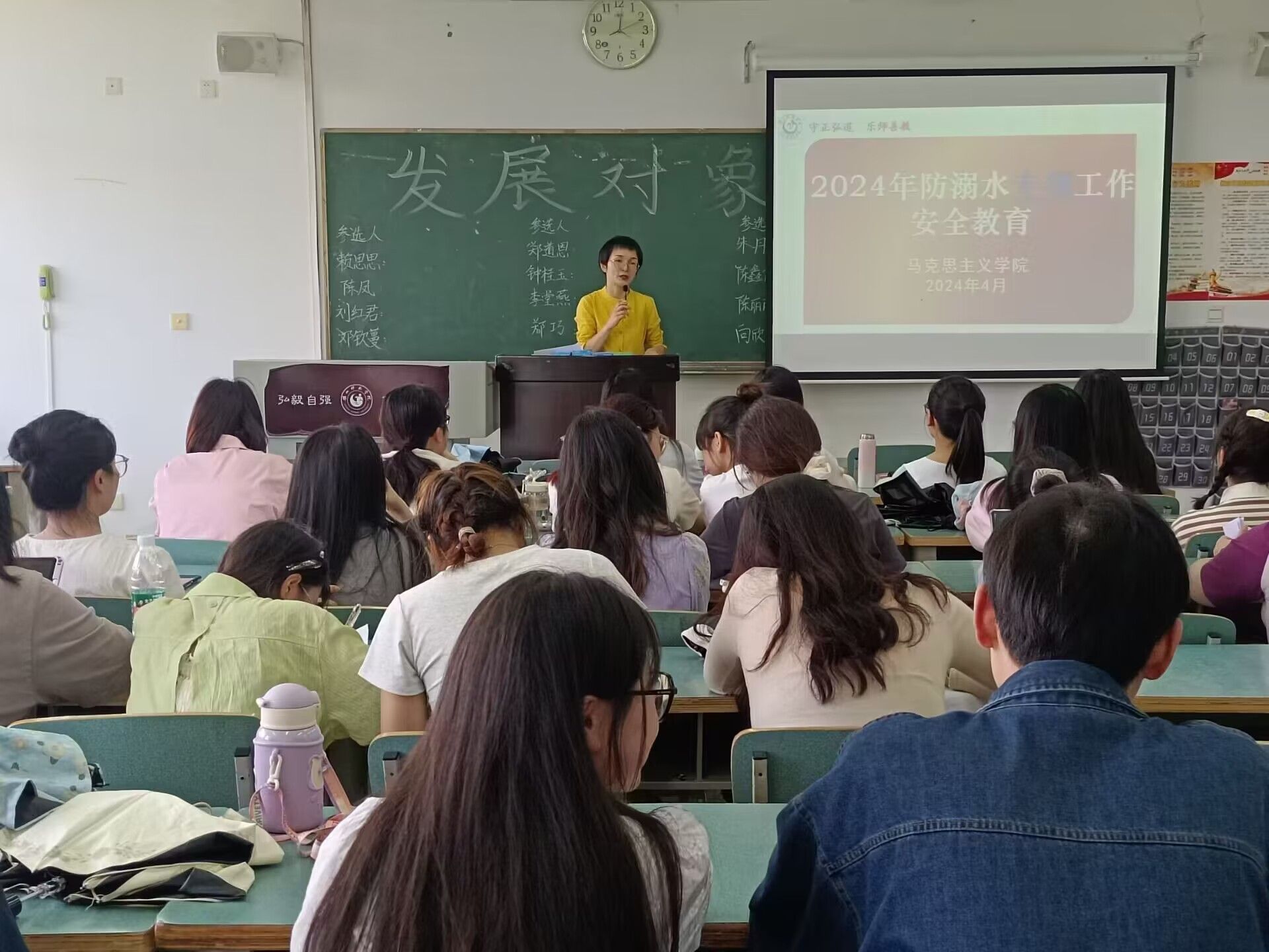 本网讯(文/吕思成 图/ 棒布拉初)在炎热夏季即将到来之际,为进一步增强我院同学们的防溺水安全意识,守护同学们的生命安全,4月19日,马克思主义学院2021、2022、2023级全体同学于行知楼召开防溺水安全教育短会。马克思主义学院辅导员黄高静、刘蕾主持本次安全教育会,2021级、2023级全体同学参与。