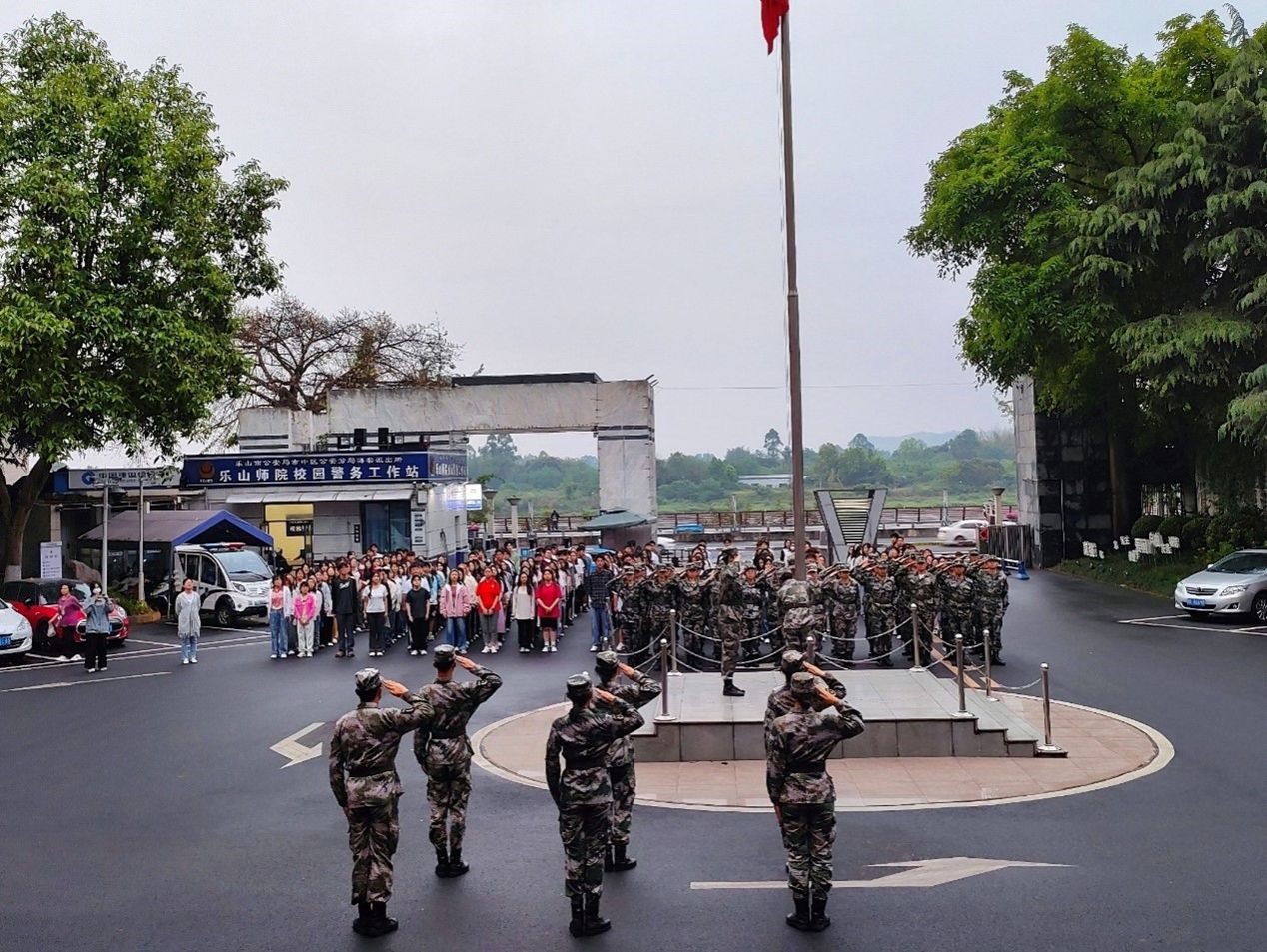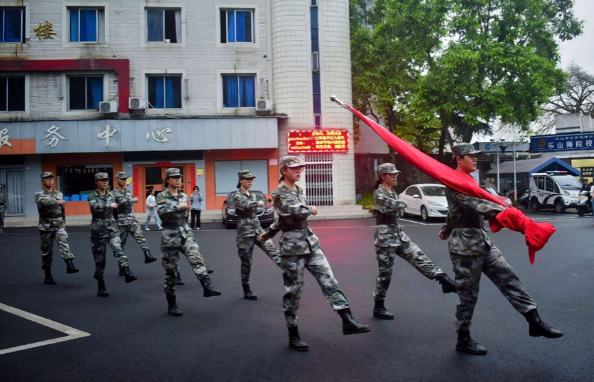本网讯(文/凌小雨 图/何小沙、罗晓语)4月22日,乐山师范学院升旗仪式在弘毅楼前的国旗广场上顺利举行,经济管理学院23级全体学子参加。