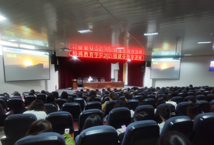 本网讯(文/牛嘉民 图/兰芳)为进一步引导2021级学生树立正确的就业观和择业观,解决就业困惑,明确就业形势,落实就业行动,特殊教育学院于4月19日举办了就业指导专场讲座,2021级全体学生聆听了此次讲座。讲座由学院党委书记刘宗泉主讲,学院党委副书记兰芳主持。