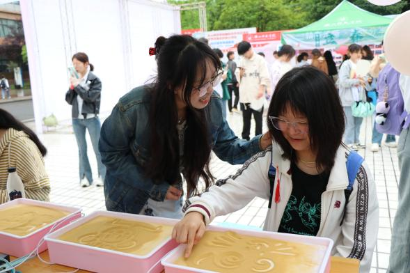 4月15-19日,特殊教育学院举办了以“共融·共创·共享”为主题的聋健融合艺术周活动,为全校师生奉献了一场独特的艺术盛宴。该活动通过组织聋生和健听生共同参与现场书法、禅绕画和沙盘游戏等活动,巧妙融合特殊教育的艺术治疗手法与美育理念,为同学们提供了一个多元化的平台,展示了聋生和健听生的艺术才华,增进残健学生间的交流与理解,也进一步增强了校园社区的凝聚力。