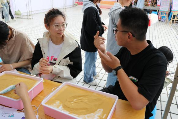 活动现场,同学们热情高涨,纷纷踊跃报名参与。特殊教育学院的同学们耐心地为参与者介绍活动规则,悉心指导他们完成一幅幅令人满意的作品。在实训大楼的沙盘游戏室,同学们沉浸于游戏乐趣中,近距离观摩、操作,并积极交流心得,共同创造出生动有趣的沙盘作品。参与活动的同学们纷纷表示,通过这次的合作创作,不仅让他们的内心得到了平静,还增进了相互之间的理解与沟通。整个活动现场被欢乐与和谐的氛围所包围,一幅幅精美的艺术作品和同学们快乐的笑声共同绘制出了一个充满活力与美好的校园生活画面。