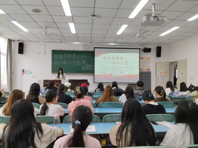 本网讯(文/毛婷 图/朱冰雨)为加强学员们对“中国红帆发展”的了解,4月24日,经济管理学院分团委组织部在行知楼开展了以学习“中国红帆发展”为主题的青春团校第三次理论课,本次理论课邀请到了“红帆”宣讲团为学员们讲解经济方面知识,并开展了团学知识方面的知识竞赛。
