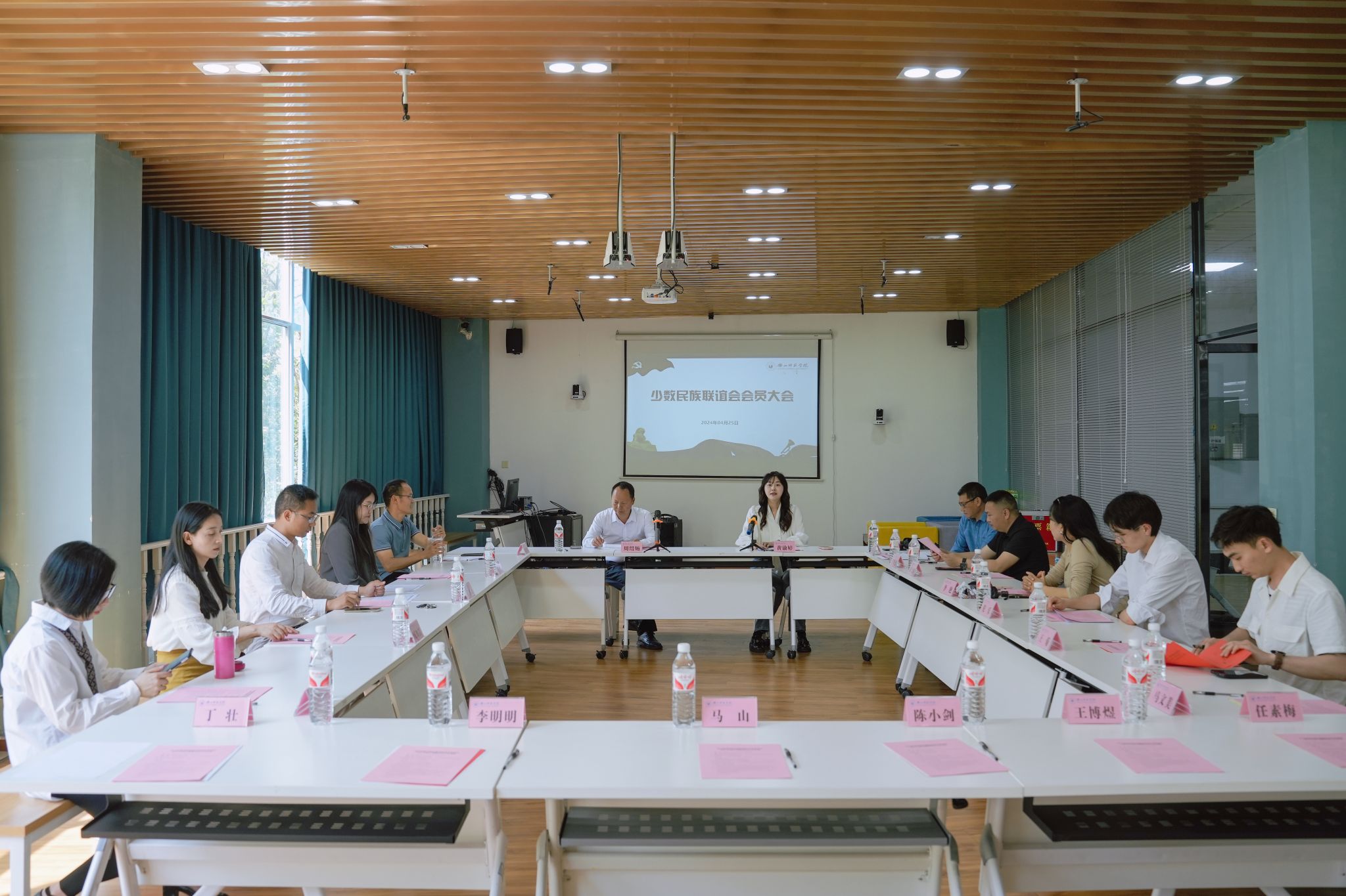 本网讯(文、图/何长英、丁壮)4月25日,乐山师范学院少数民族联谊会更名暨届中调整会员大会在沫若图书馆108-5顺利举行。学校党委统战部副部长黄渝婷,党委统战部督导管理员周绍炳,乐山师范学院归国留学人员联谊会(欧美同学会)会长、教育科学学院副院长唐前军,少数民族联谊会会长、副会长、秘书长、会员等出席会议。会议由黄渝婷主持。