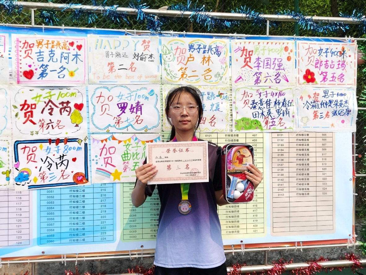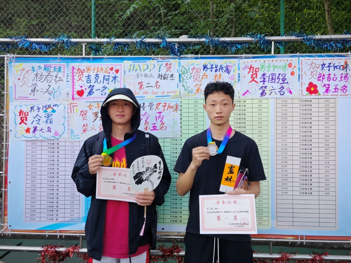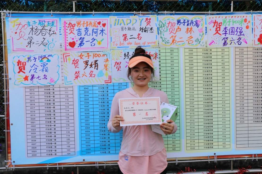 在这场运动会中,每一位经济管理学院的运动健儿都展现出了顽强拼搏、坚持不辍的精神风貌,用汗水和努力铸就了优异的成绩。其中,秦萱佳、刘小莹分别获女子200米第一名、第四名;吉克阿木、卢林分别获男子跳高第一名、第二名;刘俞杰获男子跳远、三级跳第二名;杨春红获女子铅球第二名;冷霜、代中奥、朱英杰、张绍康获男子4*100米接力第三名;秦意佳、杨春红、田木英、罗婧获女子4*100米接力第五名;李佳媛获女子跳远第四名;郎吉占玛获女子400米第五名;冷芮、曲比儿子分别获女子800米第三名、第五名等。26日下午四点三十分,闭幕式举行,乐山师范学院第二十一届运动会圆满落幕。