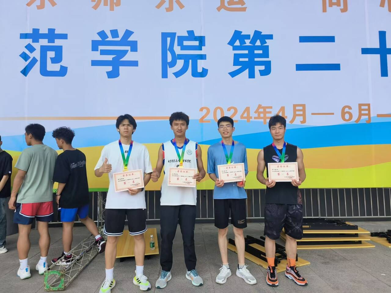 在这场运动会中,每一位电子信息与人工智能学院的运动健儿都展现出了顽强拼搏的精神风貌,用汗水和努力铸就了优异的成绩。其中,在团体赛中,男子组刘府君、翟宇浩、龚再富、雷祥荣获4×100接力赛冠军,女子组刘莉、张晓洁、姜子涵、杜文悦荣获4×100冠军;在个人赛中,周子涵荣获跳远冠军,李松霖荣获男子三级跳冠军,曹明周荣获女子组跳高冠军等。26日下午四点三十分,闭幕式上,校领导对获奖选手及团队进行了表彰,并对所有参赛人员表示高度赞扬和衷心感谢。