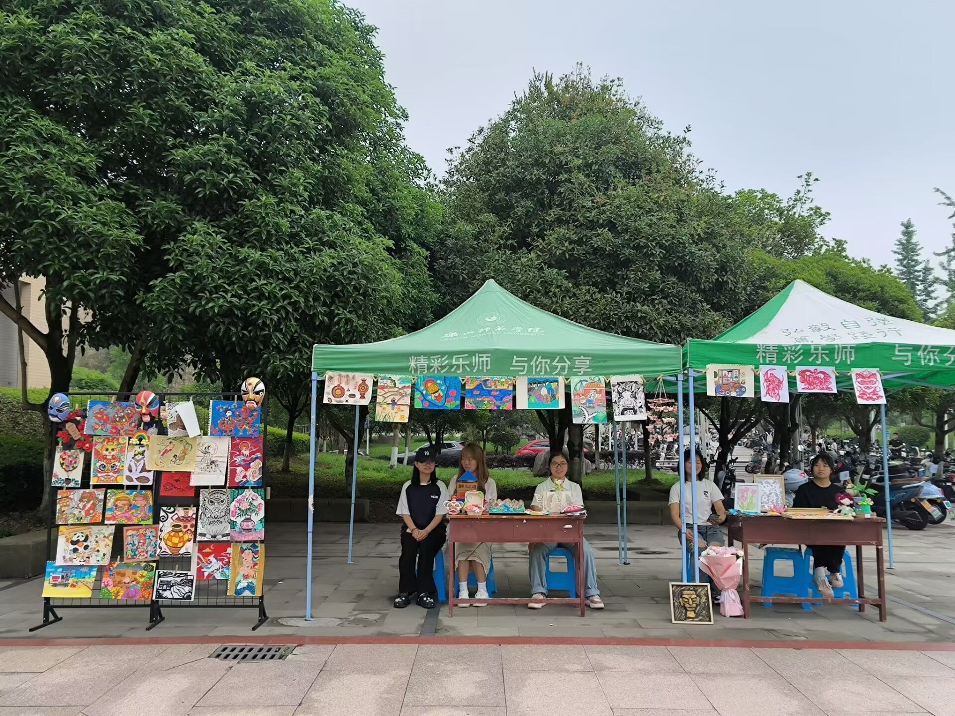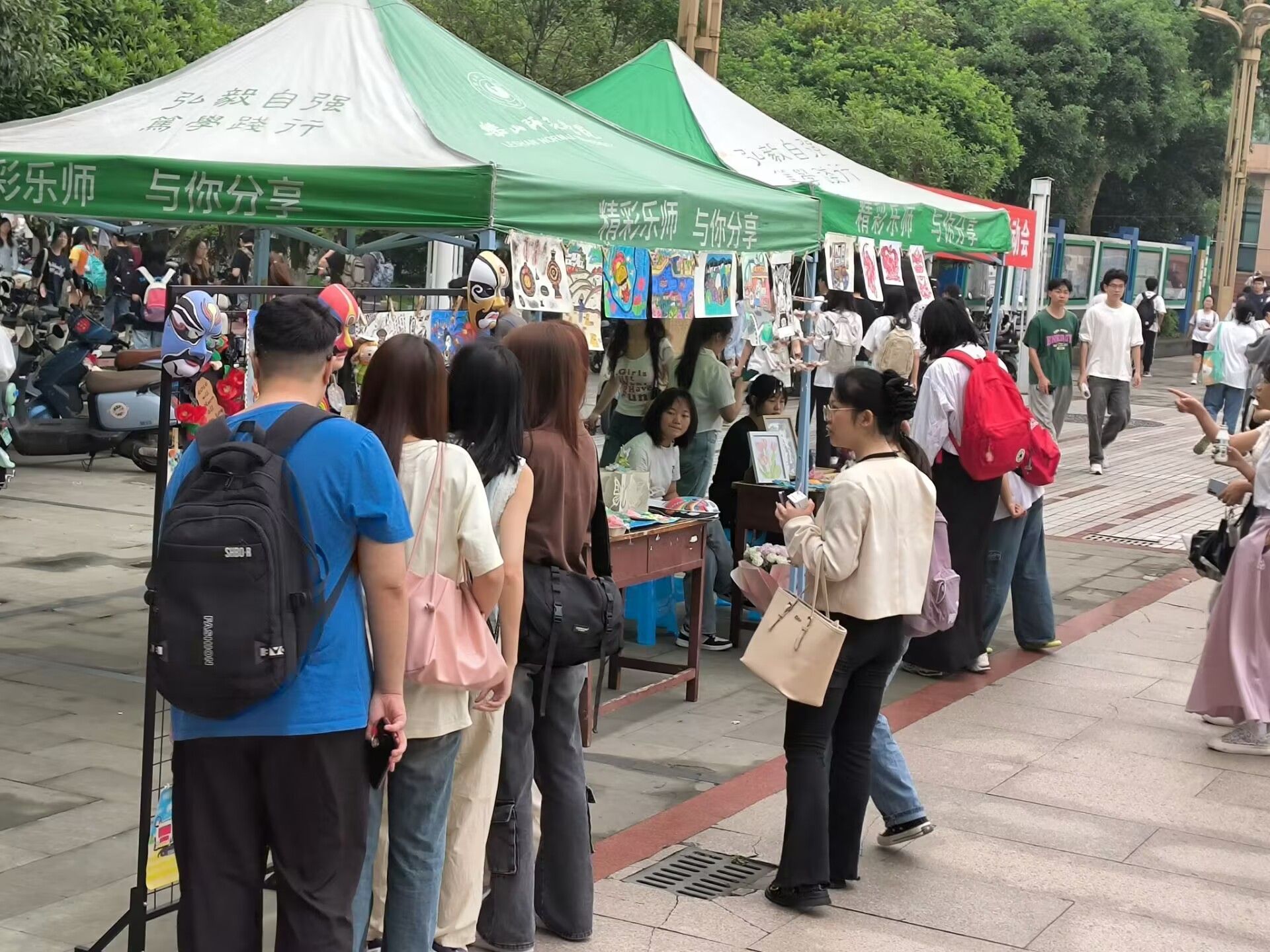 本网讯(文/古雪 图/杨红钰、熊与欢)为促进美育实践发展,激发学生对艺术创作的热情,4月29日,教育科学学院“师说·美育”第二届师范生手工·绘画作品展示交流活动在桂花广场开展,吸引了众多师生的目光。