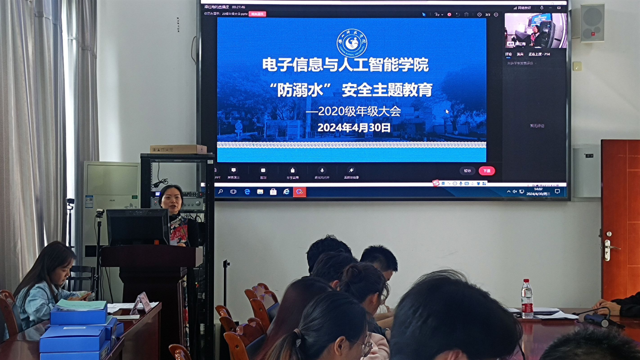 本网讯(文/段洪杰 图/姜星宇)近日,电子信息与人工智能学院召开五一节假日前安全教育大会,旨在加强学生的安全意识,确保他们度过一个平安愉快的假期。本次大会由电智学院各个年级的辅导员谭红梅、强光平、雷雄锴、肖苗、狄红霞主持,通过线上与线下相结合的方式在特教C501、行知楼310、325等部分教室举行,电智学院全体学生参加了此次大会。