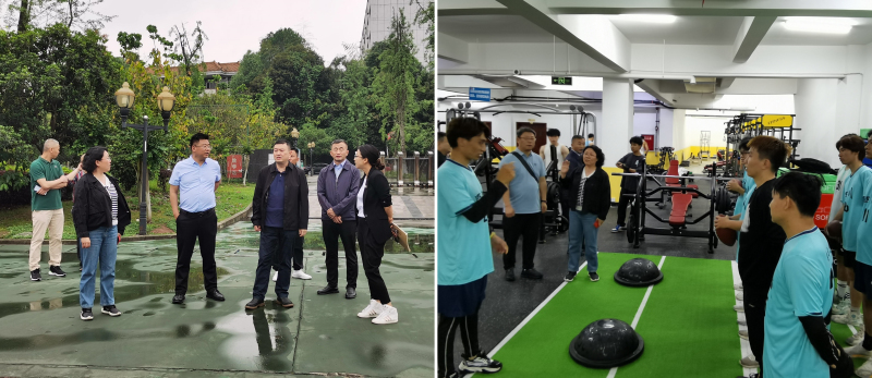 会前,调研小组一行先后到学校北校区运动场、特教大楼A栋、学校体育教育中心康复训练管等地进行了实地考察,并对正在训练的四川省聋人足球队队员进行了慰问。