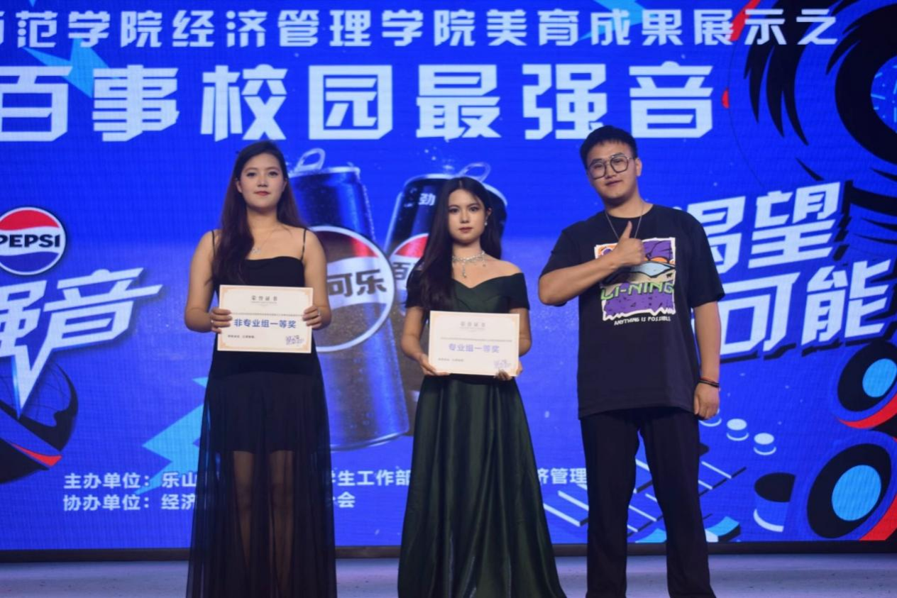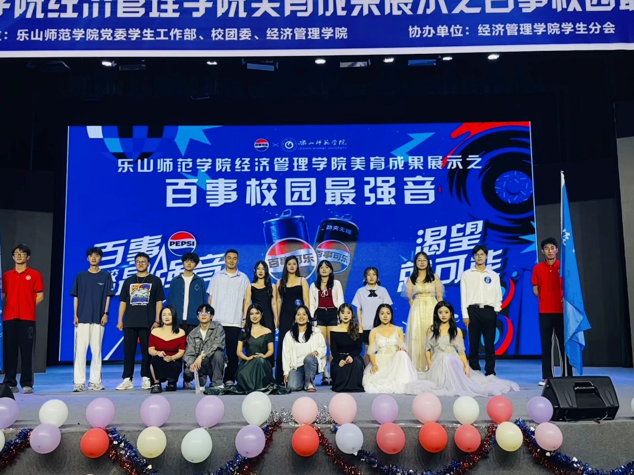 本网讯(文/罗代丽 图/罗晓语、朱利坪)为进一步落实各级教育主管部门和学校对于加强大学生美育教育的相关要求,5月10日晚,由乐山师范学院党委学生工作部、校团委、经济管理学院主办,经济管理学院学生分会协办的美育成果展示之百事校园最强音决赛在实训楼多功能厅举办。百事公司相关领导、沫若艺术团团长房靖翔及现场上百位学生来到了此次决赛的现场。