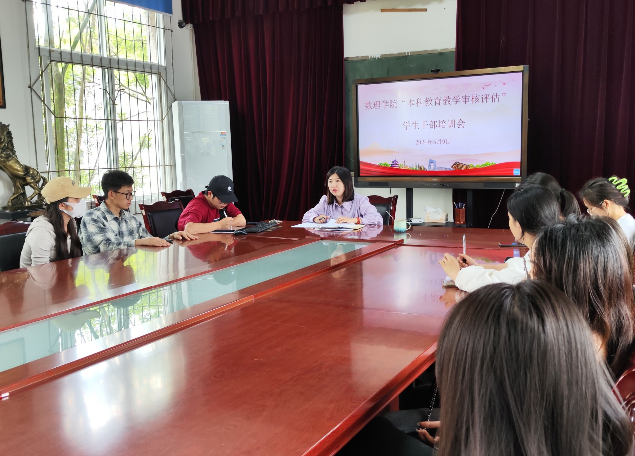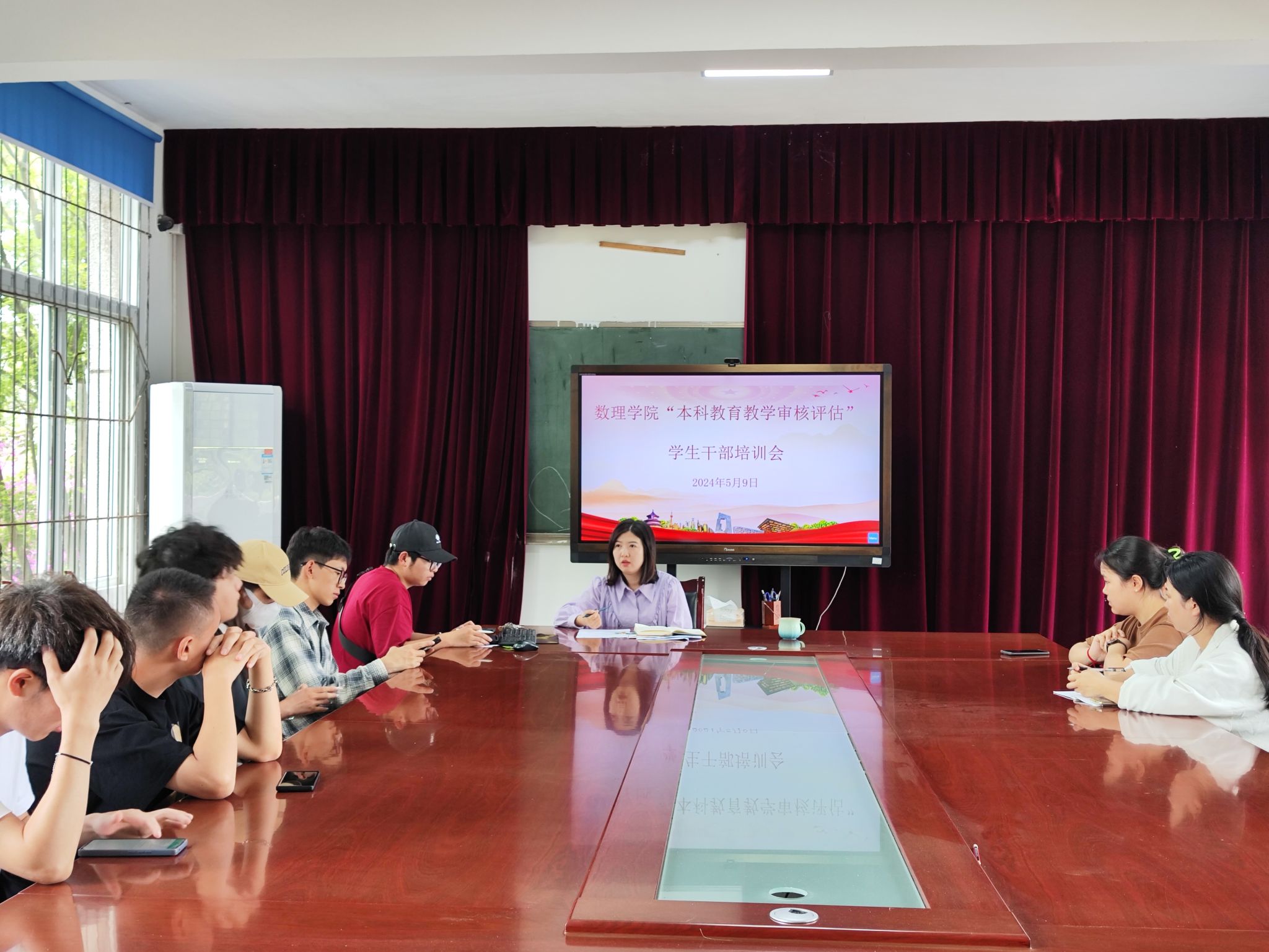 本网讯(文/申莹、图/马梓函)为认真落实校、院关于本科教育教学审核评估工作的部署要求,教育引导广大学生以优良的学风和饱满的精神状态投入到迎评促建工作中,数理学院于5月9日在学院会议室召开学生干部专项培训会议。本次培训由学生科科长魏玮主持,数理学院主要学生干部参加。