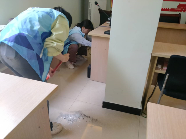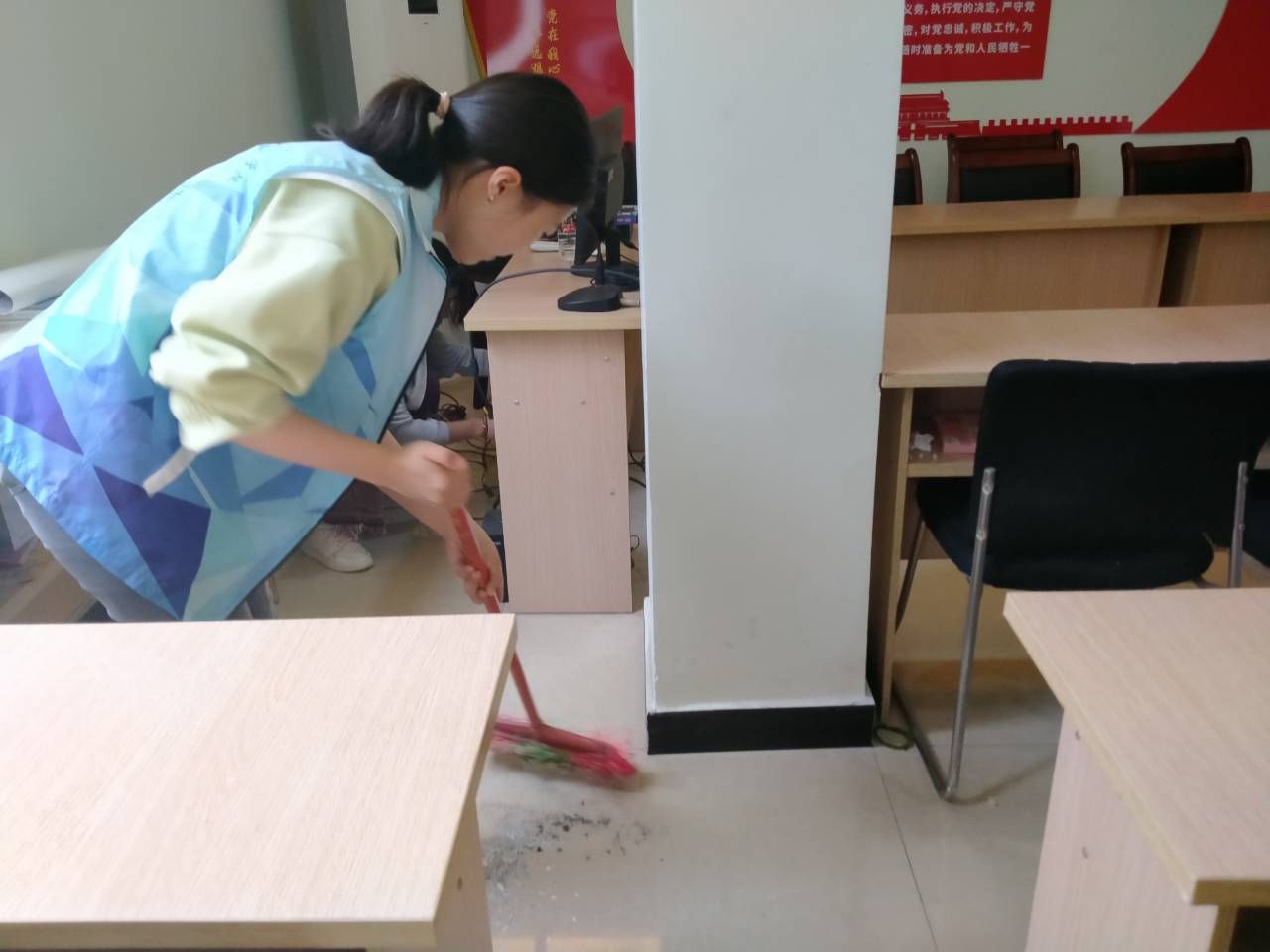 活动开始,志愿者们13:30在石碑门集合,青志干事清点好人数后于13:50准时出发前往较场坝社区。到达较坝场社区后由社区的工作人员安排签到,随后分为男生和女生两个组并领取劳动工具,男生负责打扫社区停车场的垃圾,女生负责打扫社区内的大会议室和小会议室。清理完毕后,志愿者们归还工具,并拍照留念。最后,由青志中心干事统一带回。