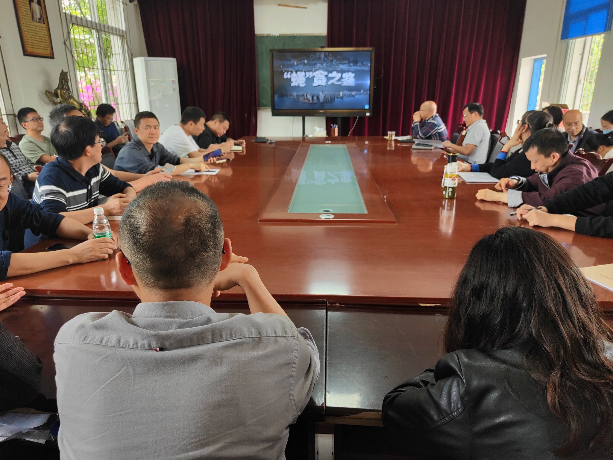本网讯(文/图 陈新凯) 为进一步加强党风廉政建设,促进党纪学习教育走深走实,根据党纪学习教育安排,近日,数理学院组织全体师生党员在会议室集中观看警示教育片《“蝇”贪之鉴》。活动由学院党委书记马力强主持。