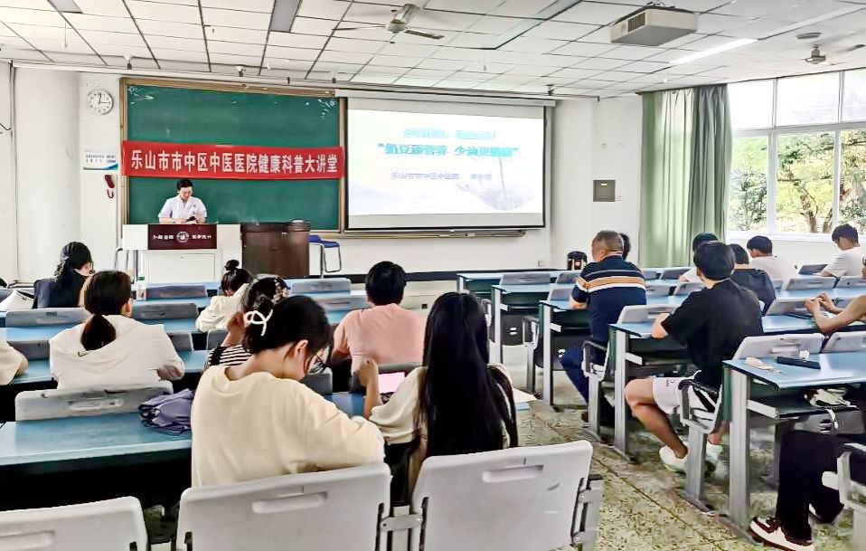 本网讯(文图/宋彦利)2024年全民营养周(5月12日——18日)暨“5.20”中国学生营养日来临之际,5月16日下午,校医院邀请乐山市市中区中医院医务人员在行知楼114为师生开展主题为“奶豆添营养,少油更健康”的健康科普讲座。