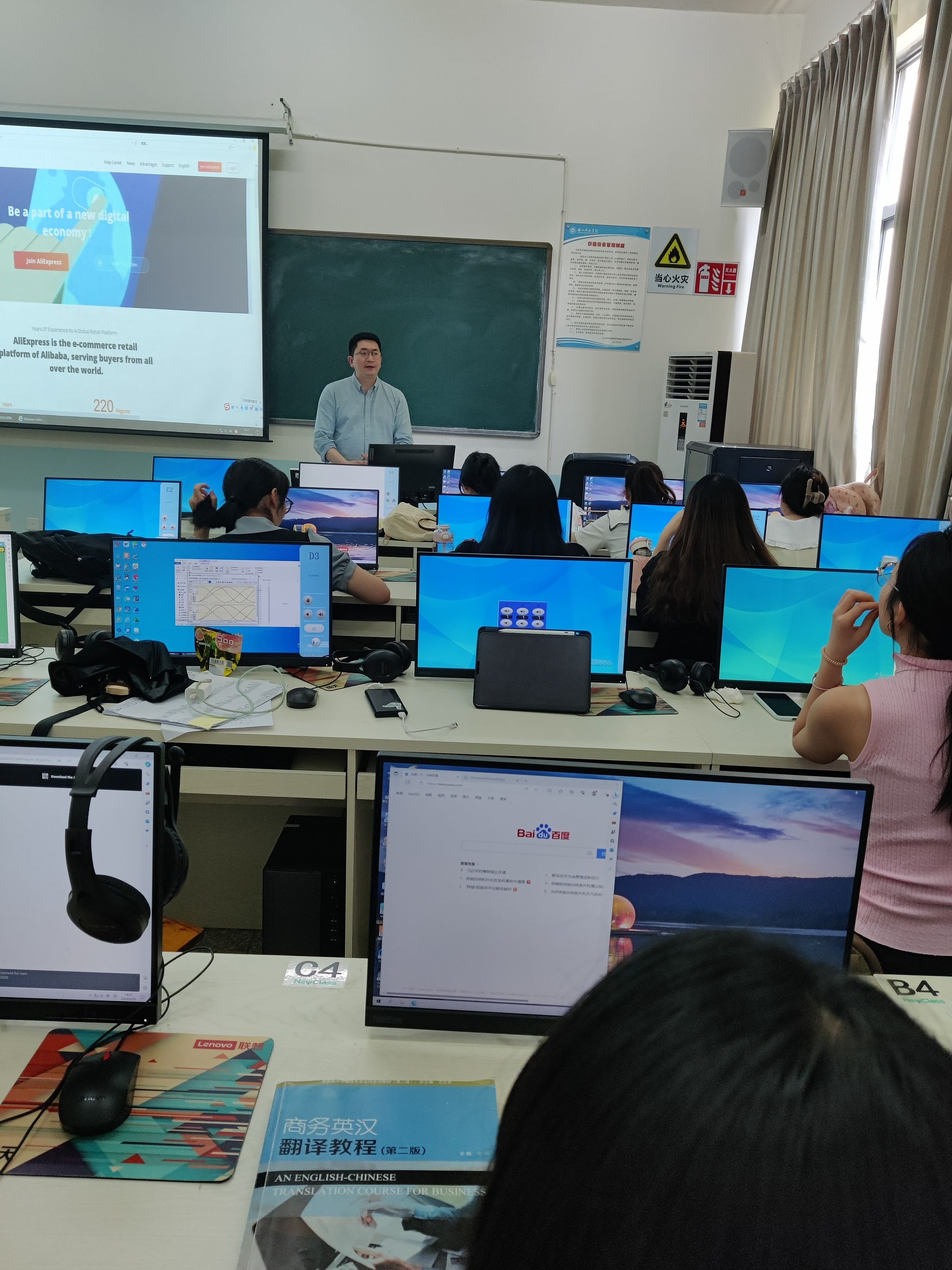 本网讯(文图/黄文馨) 5月20日,一场面向21级商务英语班同学的“B2C速卖通平台实践活动”在实训楼B306教室成功开展。