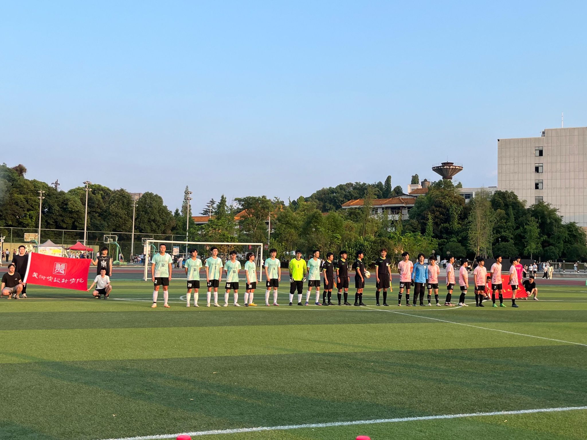 在决赛中,美术与设计学院足球队与实力强大的对手展开了激烈的对决。比赛伊始,双方就展开了猛烈的攻势,场上形势瞬息万变,第一节比赛末,马克思主义学院中场大力起脚,直接破门率先取得进球,随后,双方鏖战至第三节末,美术与设计学院通过门前混战取得进球扳平比分,此后双方在长久的拉锯战中均无进球,比赛拖入紧张刺激的点球大战,最终美术与设计学院在点球大战中以4:2战胜对手夺得冠军。
