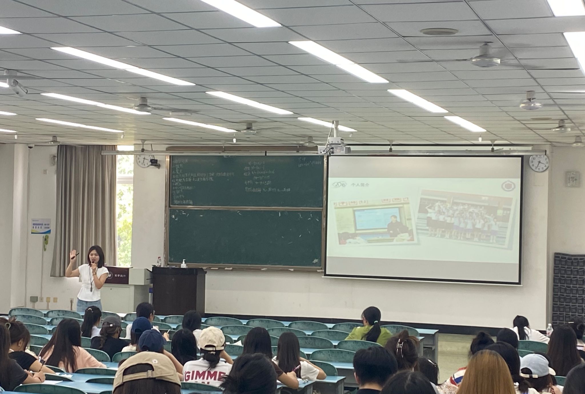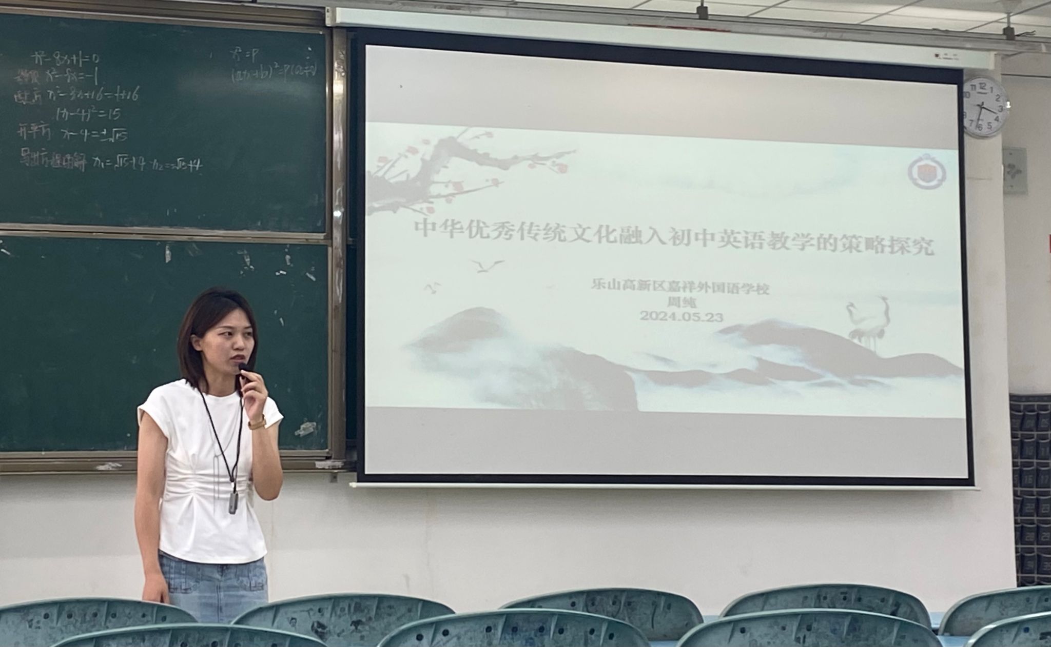 本网讯(文图/李洋华)5月23日,乐山嘉祥外国语学校初中英语部的周纯老师受邀在行知楼201教室做了题为 “中华优秀传统文化融入初中英语教学的策略探究”的专题讲座。讲座由外国语学院英语系教师李洋华主持,2023级英语专业全体学生参加了此次讲座。