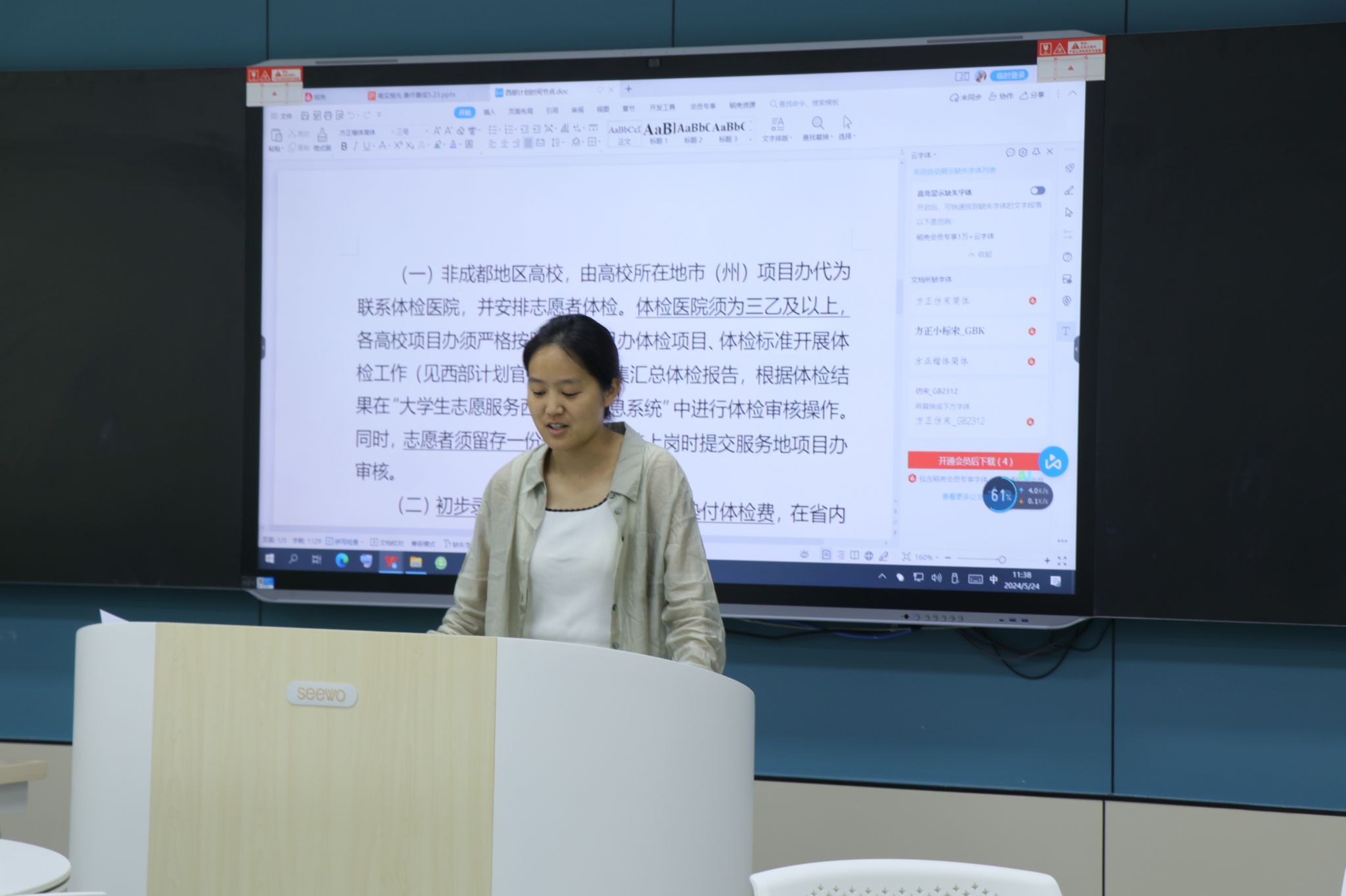 团委赵玉仙结合近期上级团组织工作部署,向参会团干部重点培训了“团员组织关系转接、国家西部计划志愿者项目、高校筑梦扬帆计划、团团微就业”等与共青团业务相关的就业帮扶工作。