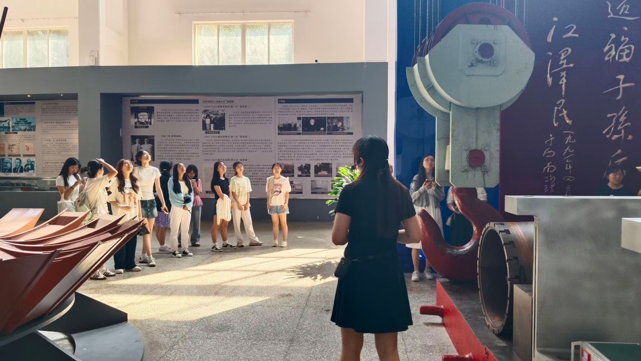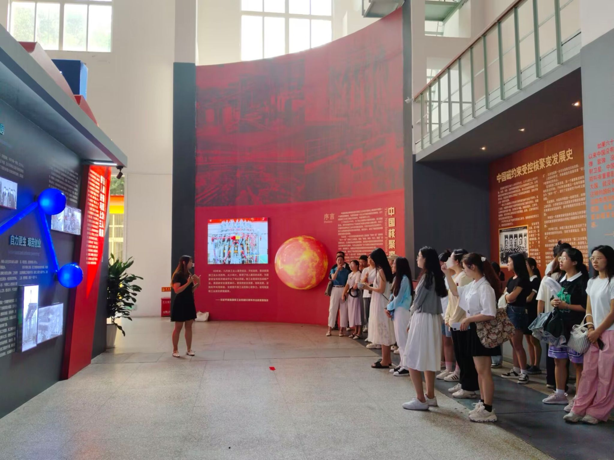 活动伊始,讲解员带领同学们了解了中国核聚变博物馆的历史与地位,以及核聚变的相关原理,强调了核聚变事业对中国发展的重要性。接着,介绍了中国的核聚变事业的发展历程,带领大家回顾了那一段艰难但光辉的历史,也见证了中国核聚变事业的进步。随后,讲解员向大家讲述了中国核事业专家钱学森等人的事迹,其中重点介绍了李正武院士,讲到了他是中国核聚变能源开发领域的开拓者,为中国核聚变事业作出了卓越贡献。同学们也在讲解过程中领悟到了他们身上的科学精神和爱国情怀。最后,讲解员带领大家一起参观了一些研究设备、模型等,也观看了一些中国核事业的发展文献,它们承载的是中国的核事业发展,是无数科研人员的努力与心血,更是鲜明、伟大的中国精神。
