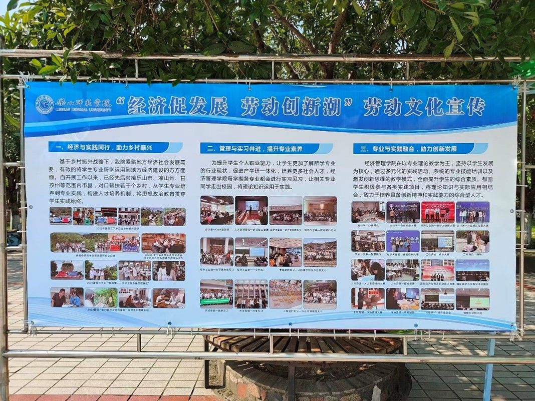 本网讯(文/许飚、王康泰 图/伍晓敏)5月24日下午,经济管理学院学生分会权益部在北校区桂花广场举办了以“经济促发展,劳动创新潮”为主题的劳动文化宣传活动。