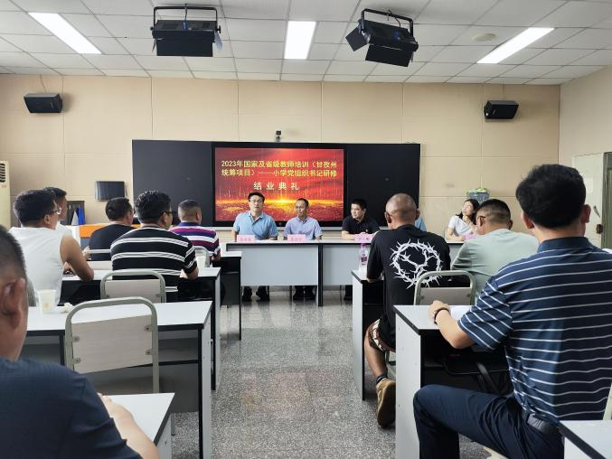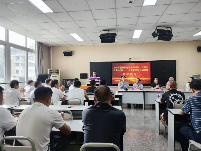 本网讯(文图/郑倩)为进一步提升中小学党组织政治功能和组织力,提高党组织书记的政治素养和履职能力,推动小学党建工作与基础教育事业融合发展,由我校教育科学学院承办的2023年国家及省级教师培训(甘孜州统筹项目)——小学党组织书记研修毕业典礼于5月27日在我校弘毅楼圆满举行,学院党委书记罗立顺,党委副书记纪委书记何晓军,副院长唐前军、马艺丹,以及38名来自四川省甘孜藏族自治州的各小学的书记、校长参加本次培训的结业典礼。结业典礼由副院长徐世鼎主持。