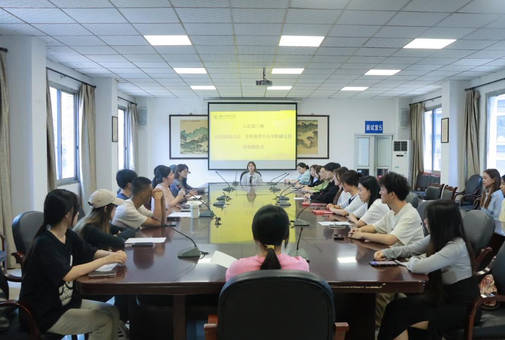 会议结束后师生一行前往自强楼会议室召开沫若艺术团新任干部见面会,会议由沫若艺术团团长房靖翔主持会议。