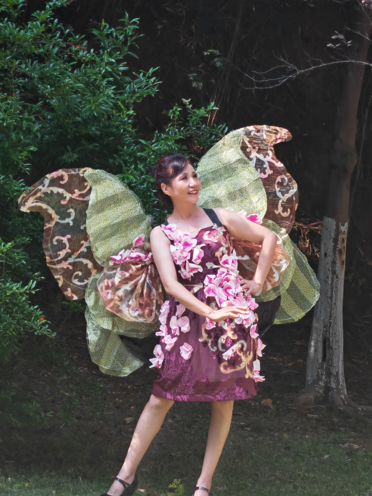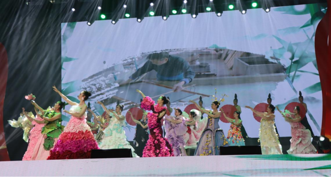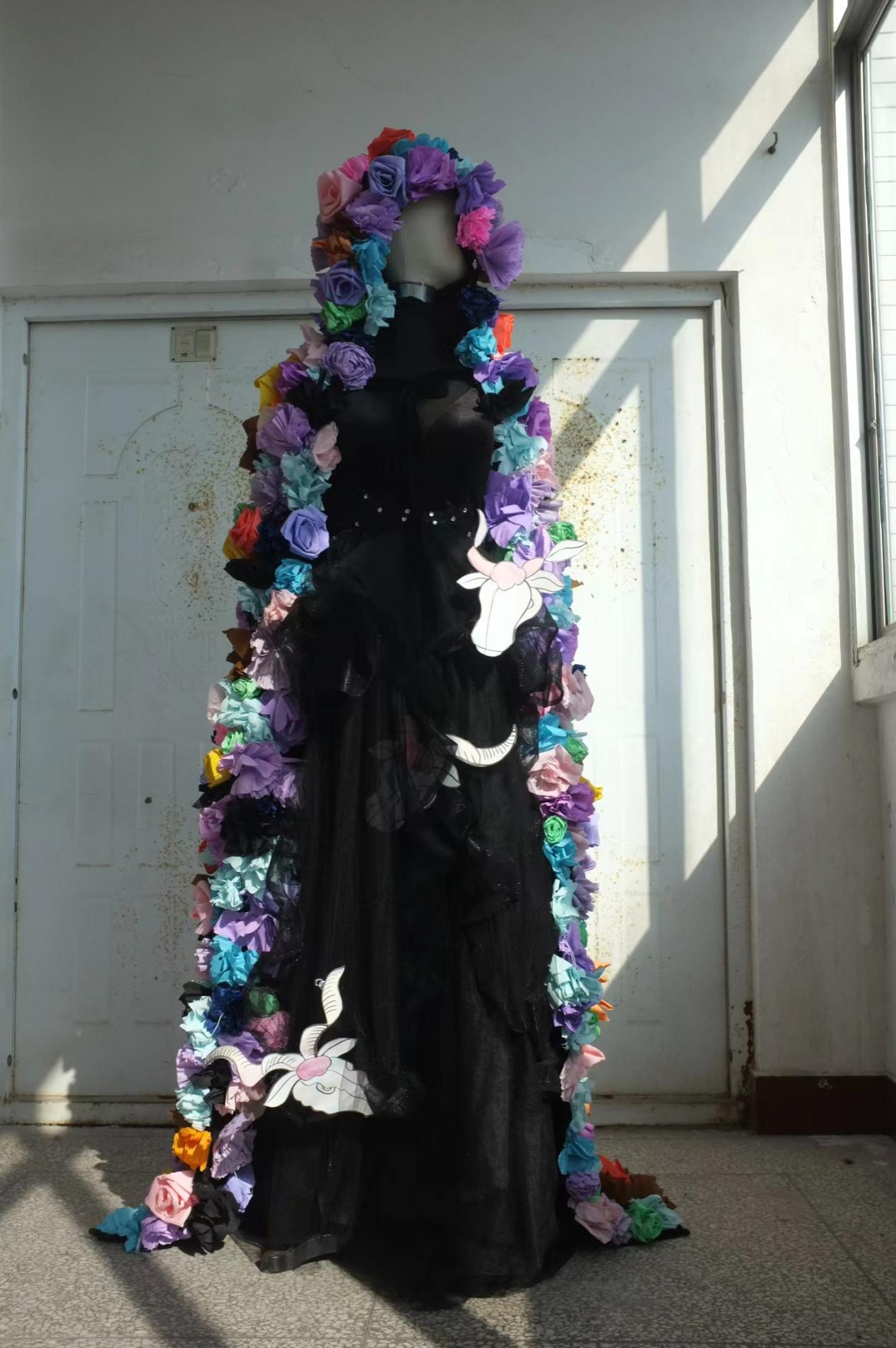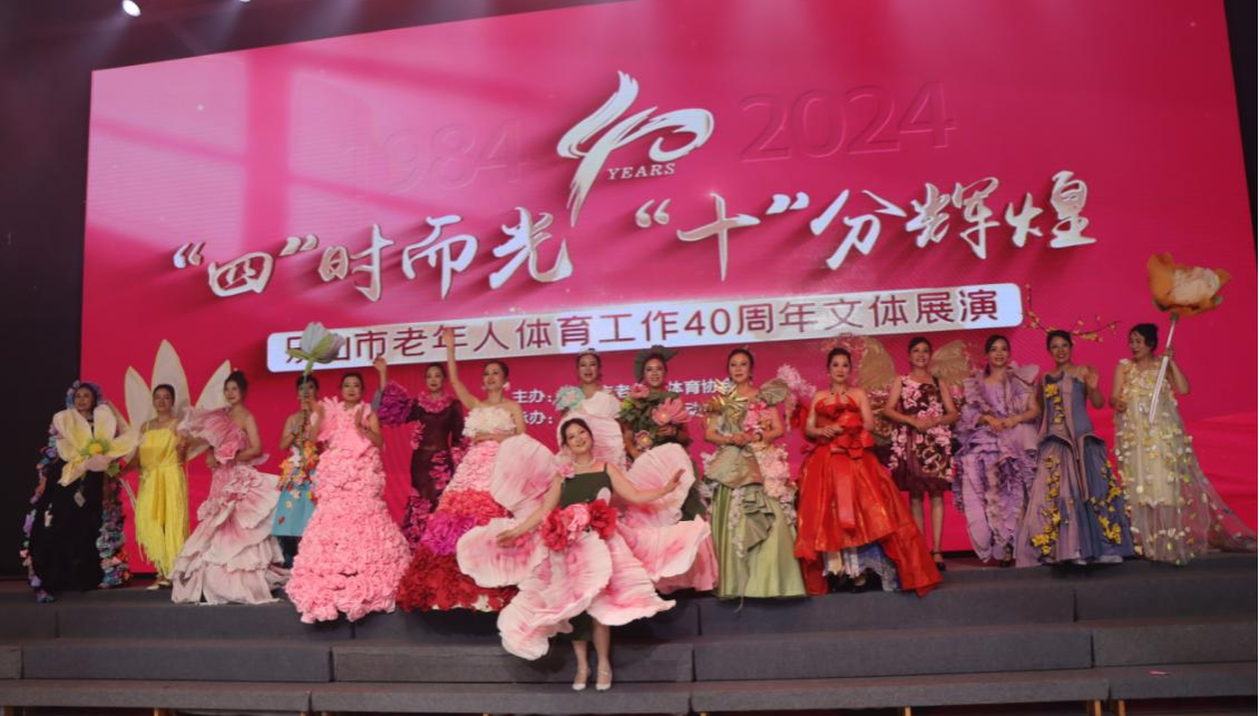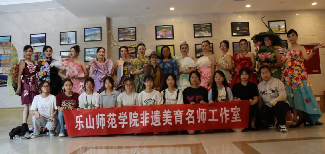 本网讯(文/李宏耘、王永清 图/李宏耘)5月24日下午,在乐山老年大学底楼大厅,由乐山市老体协主办的“四”时而光“十”分辉煌——文体展演活动盛大开幕,乐山师范学院非遗美育名师工作室受邀参加展演。由美术与设计学院教师敬静、李宏耘、王永清老师指导,学生参与制作的纸艺系列服装走秀《百花齐放》作为整场表演的压轴节目出场,音乐响起,模特姐姐们个个训练有数,根据不同的服装造型,错落有致,缓缓走出,一朵、两朵、三朵……16朵花尽情绽放,成为全场经典,获得现场观众一致称赞。